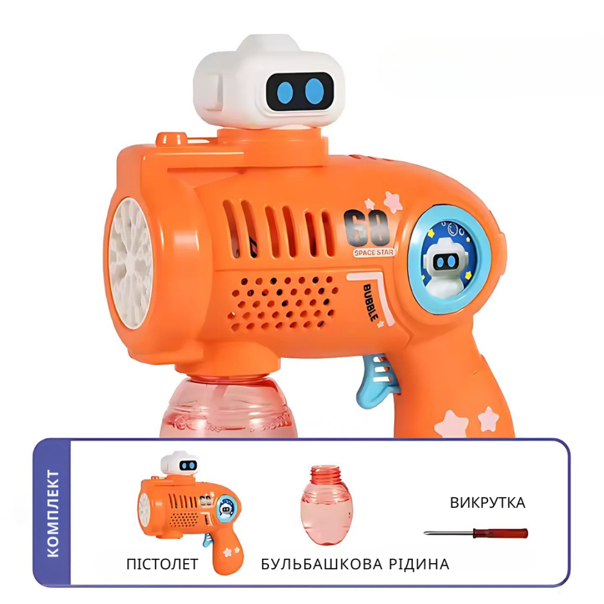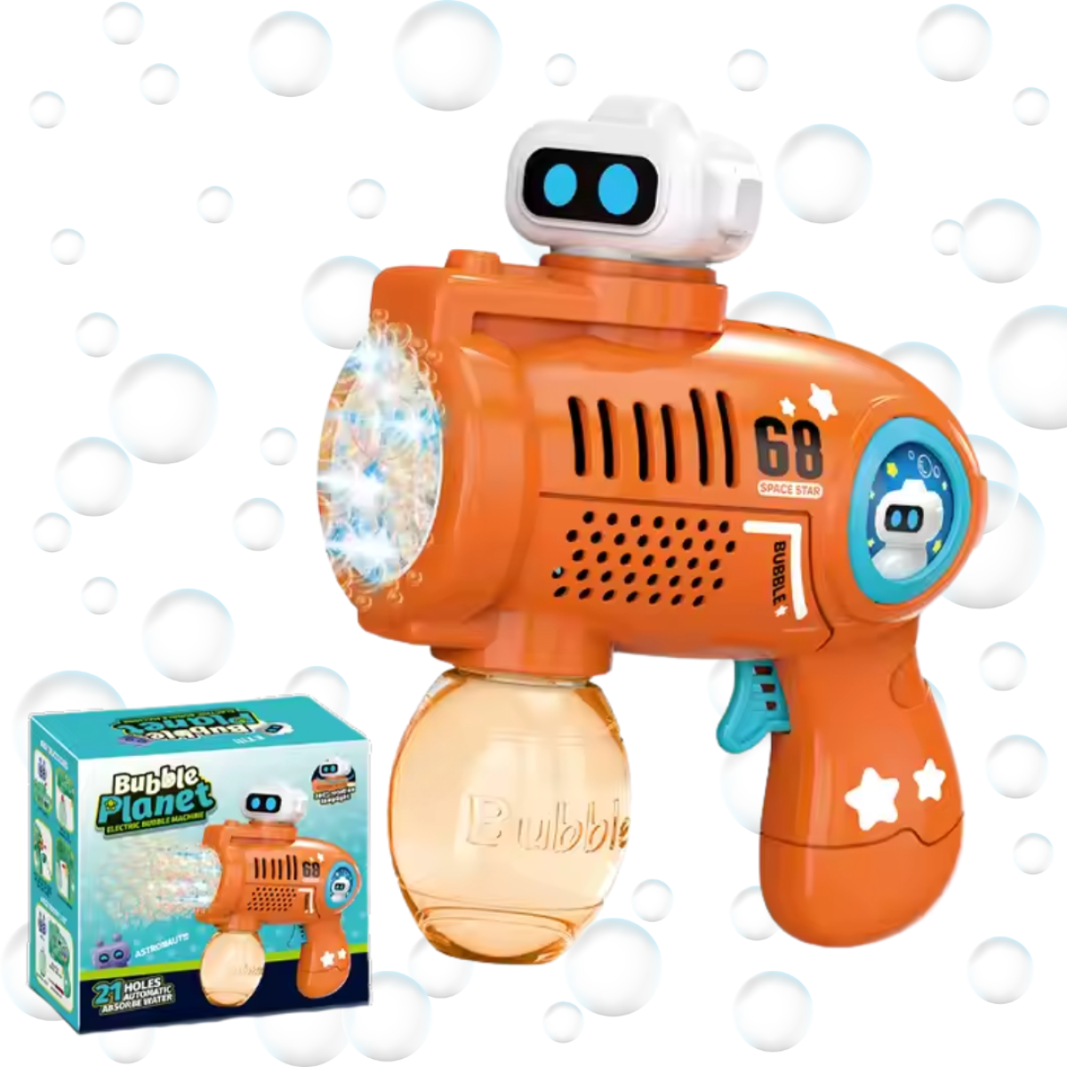 Генератор мильних бульбашок, пістолет на батарейках з LED-підсвіткою для мильних бульбашок для дітей, помаранчевий