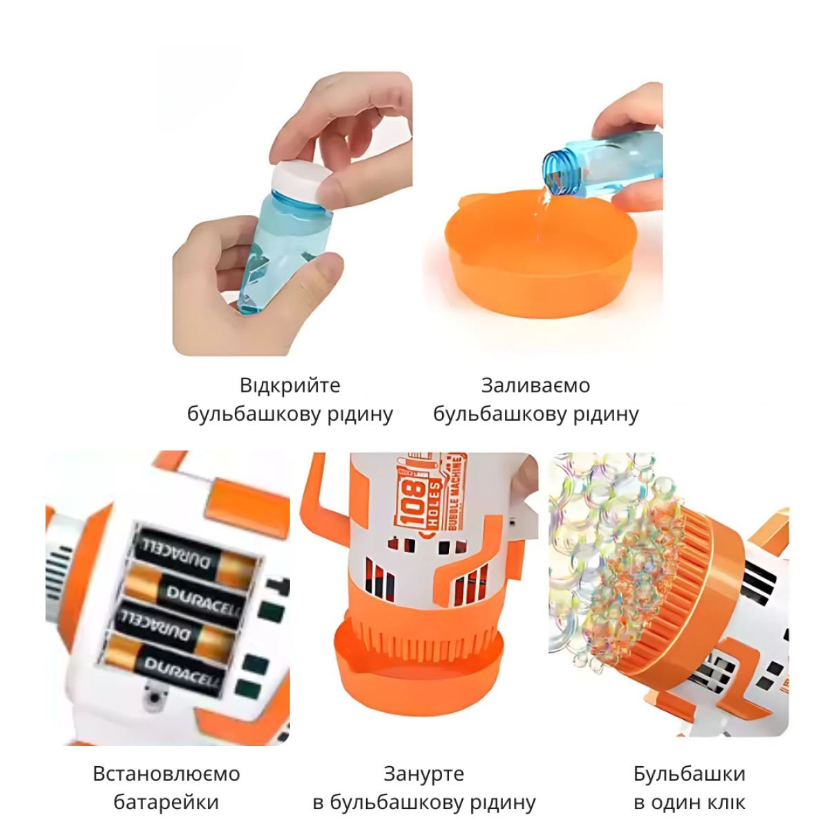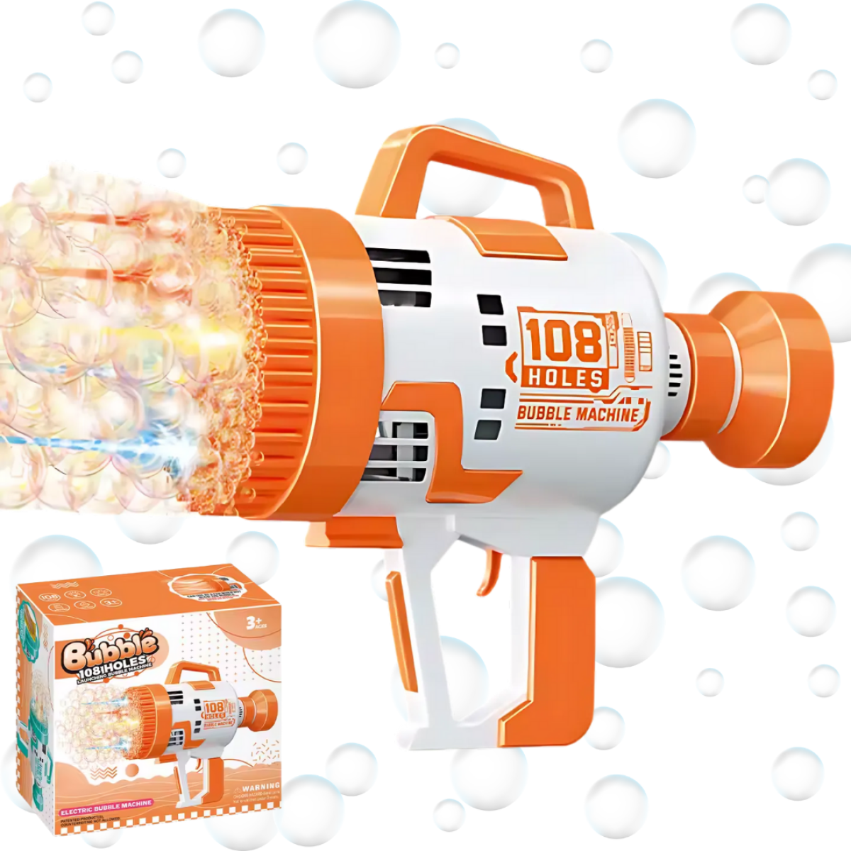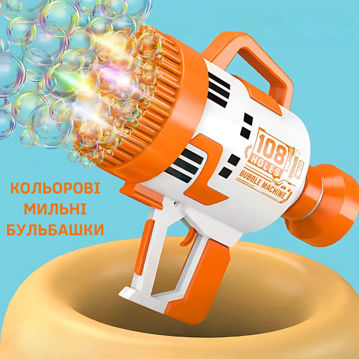 Генератор мильних бульбашок, пістолет з LED-підсвіткою на батарейках для мильних бульбашок для дітей, помаранчевий