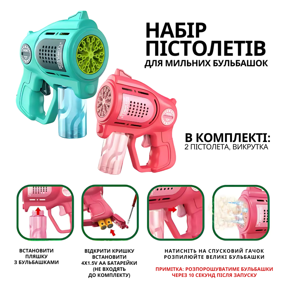 Набір пістолетів для мильних бульбашок, мильні бульбашки для дітей, генератор мильних бульбашок з підсвічуванням