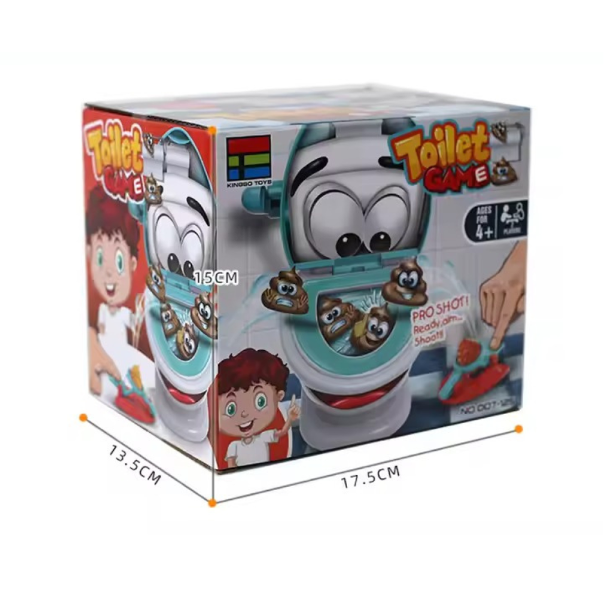 Це динамічна та смішна гра для двох гравців, яка точно підніме настрій! Ваше завдання – за допомогою катапульти влучно запускати “кучки“ в унітаз швидше за суперника. Гра розвиває координацію, швидкість реакції та дарує багато сміху й азарту! Особливості гри: Для 2 гравців Розвиває влучність, моторику та почуття гумору Прості правила та швидка підготовка Підходить для дітей від 4 років Комплектація: 6 “кучок“ кожного кольору (всього 12 штук) 2 катапульти 1 унітаз (мішень) Розмір коробки: 17.5 х 15 х 13.5 см Матеріал: пластик