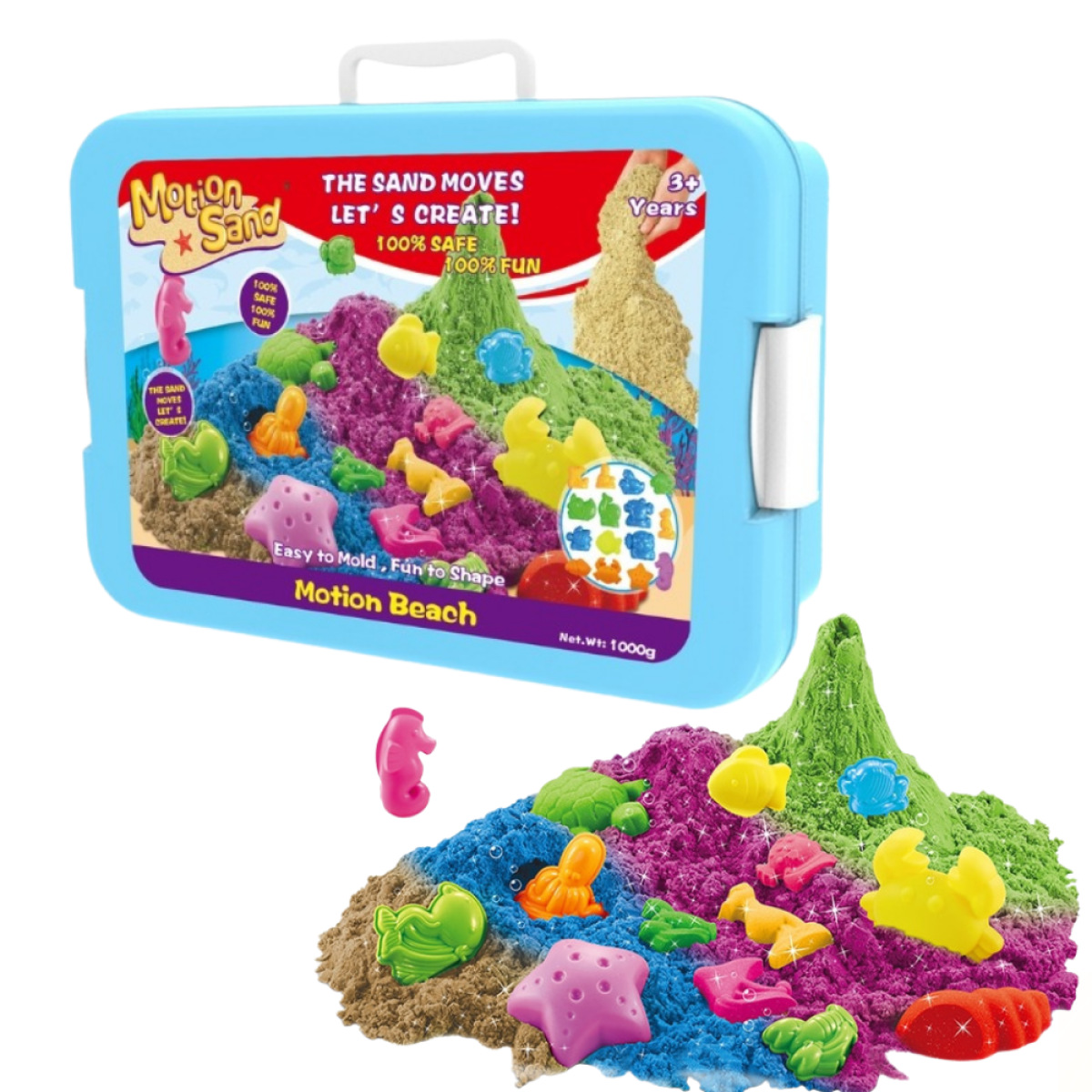 Кінетичний пісок дитячий, набір «Motion Beach», маса для ліплення, для дитячої творчості з формочками