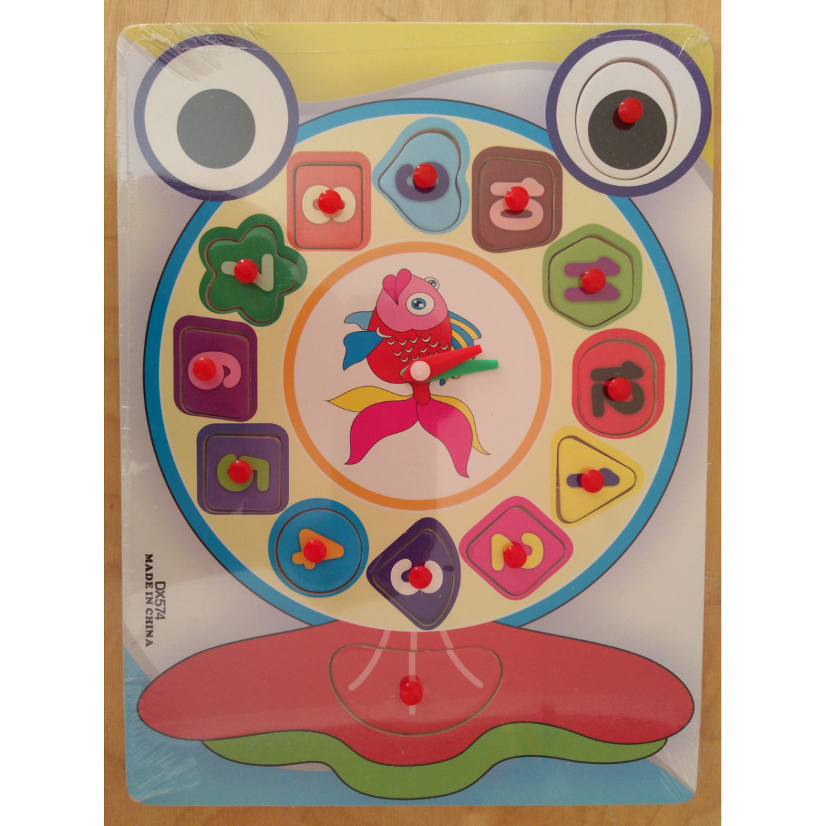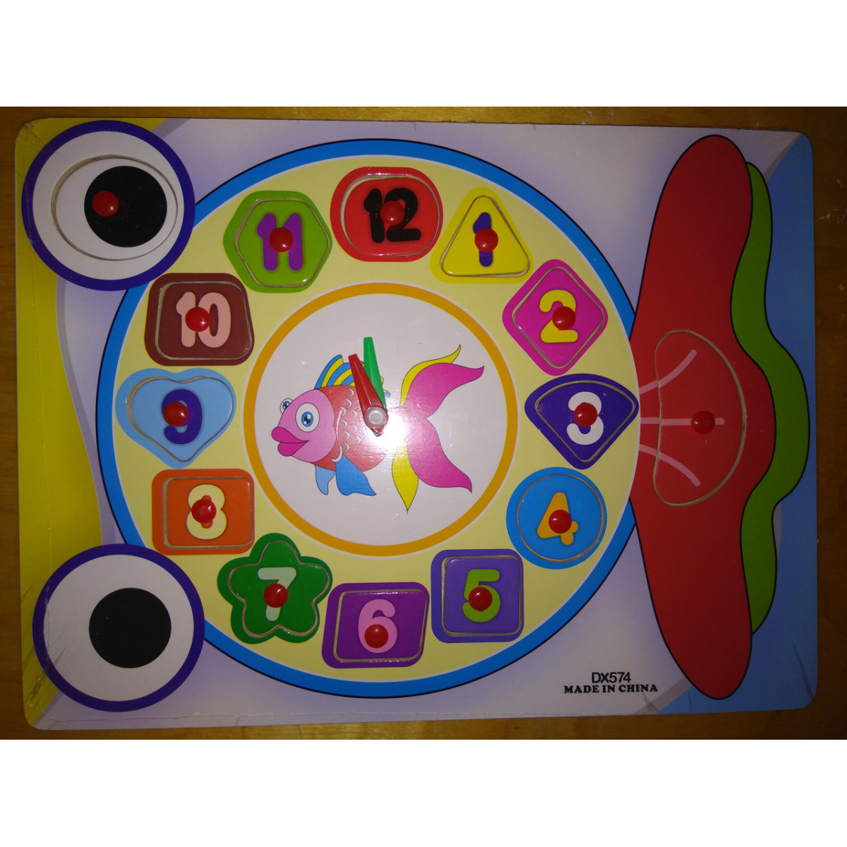 Дерев“яна іграшка Пазли Годинник Рибка, цифри-пазли, рамка-вкладиш, у ляльці, 30-22-1 см