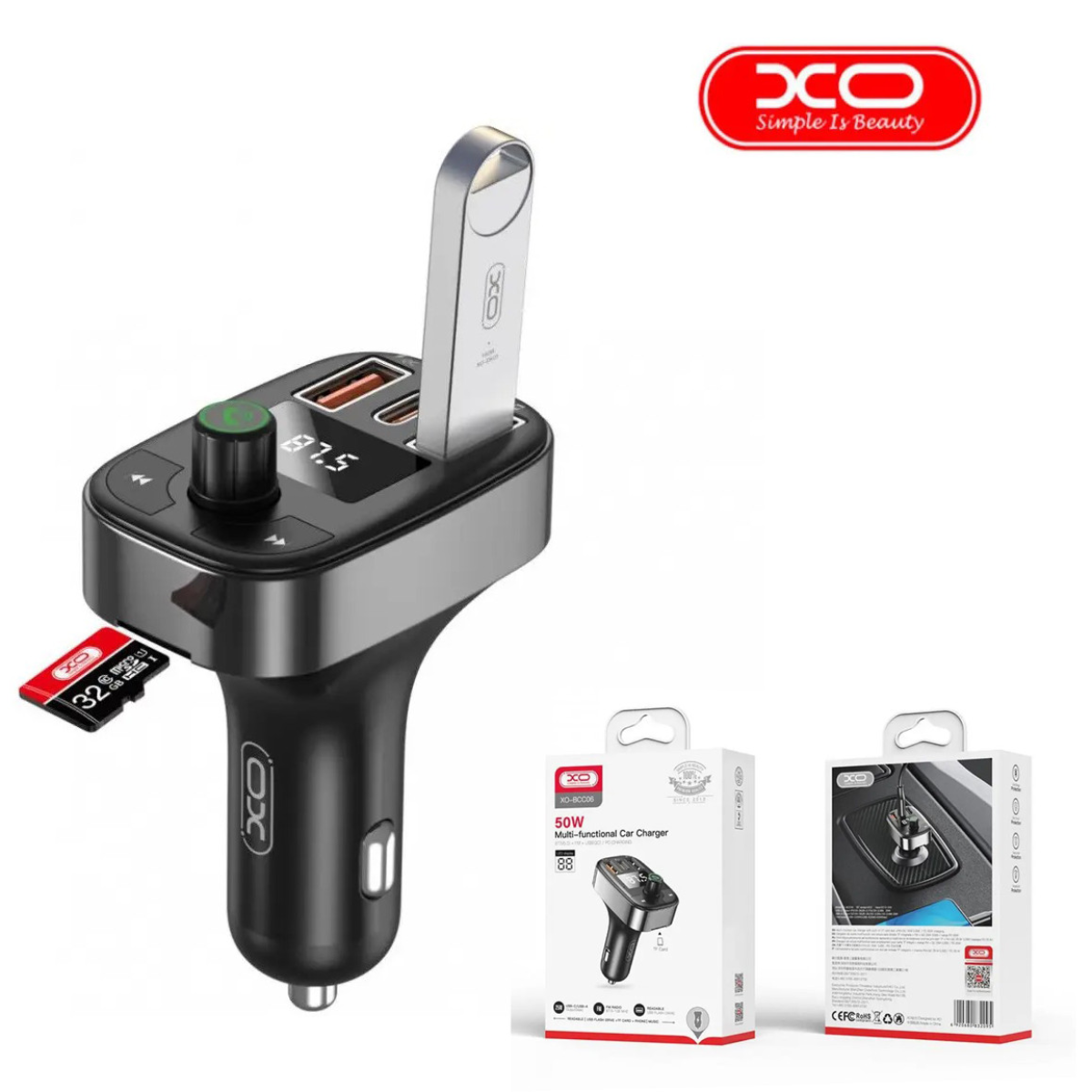 Модулятор FM XO BCC06 автомобільний ФМ трансмітер зі швидкою зарядкою QC3.0 та дисплеєм Чорний