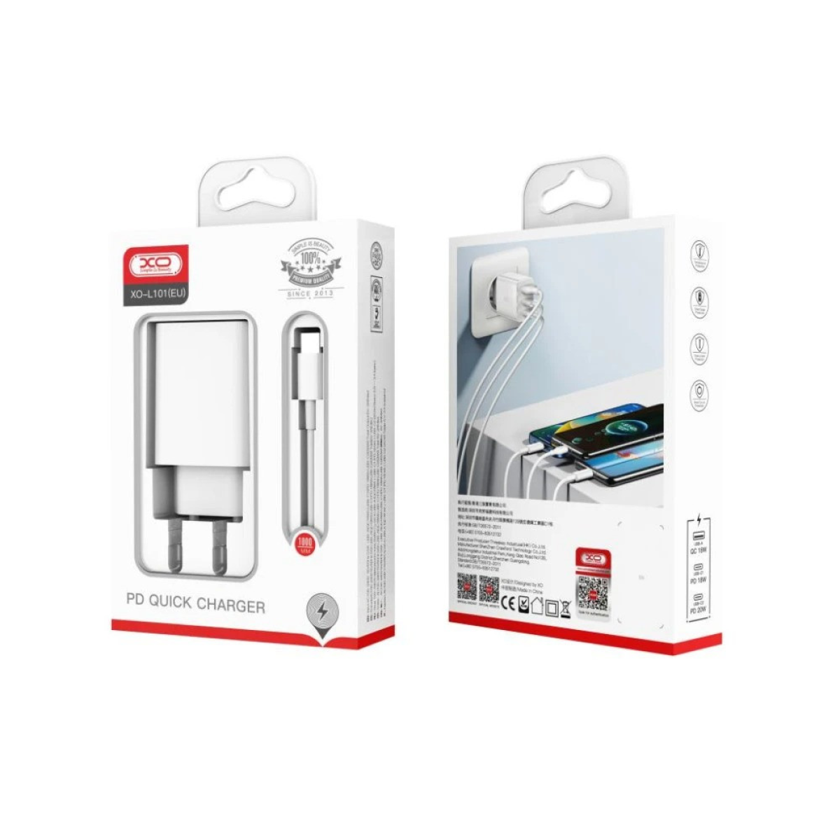 Мережевий зарядний пристрій з кабелем XO L101 PD + QC3.0 1USB/2Type-C/20W + Type-C - Type-C Білий