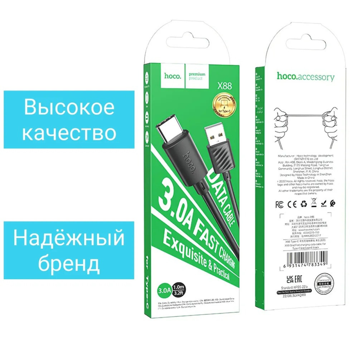 USB Кабель для телефону, ноутбука, ПК HOCO X88 USB - Type-C 1М Чорний