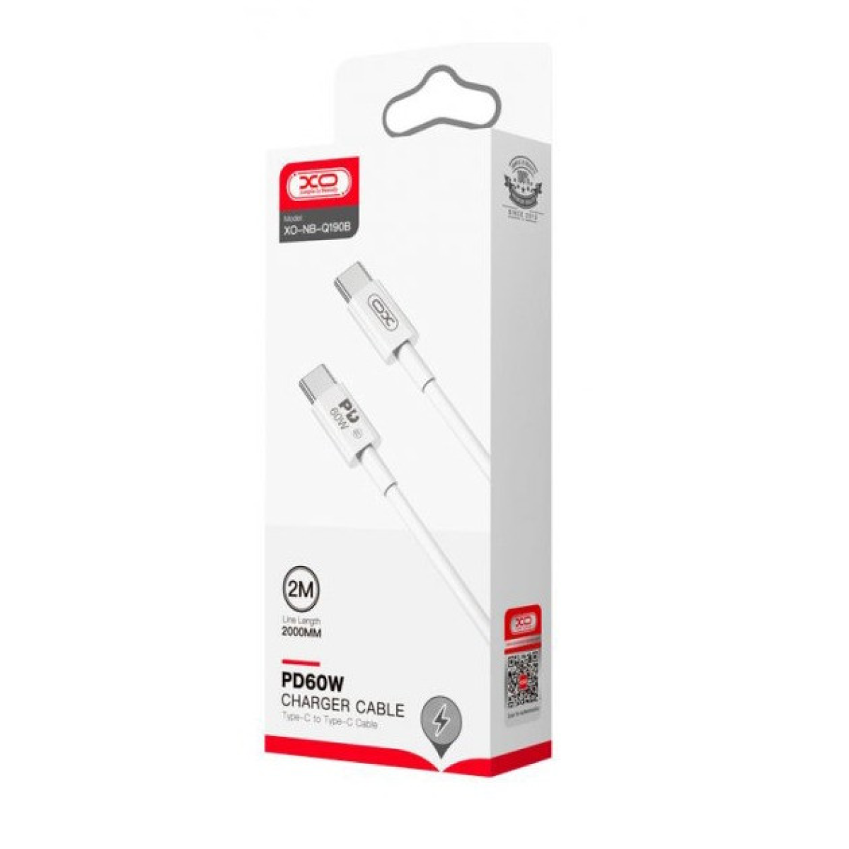 Кабель швидкого заряджання та синхронізації USB XO NB-Q190B Type-C - Type-C 2М Білий