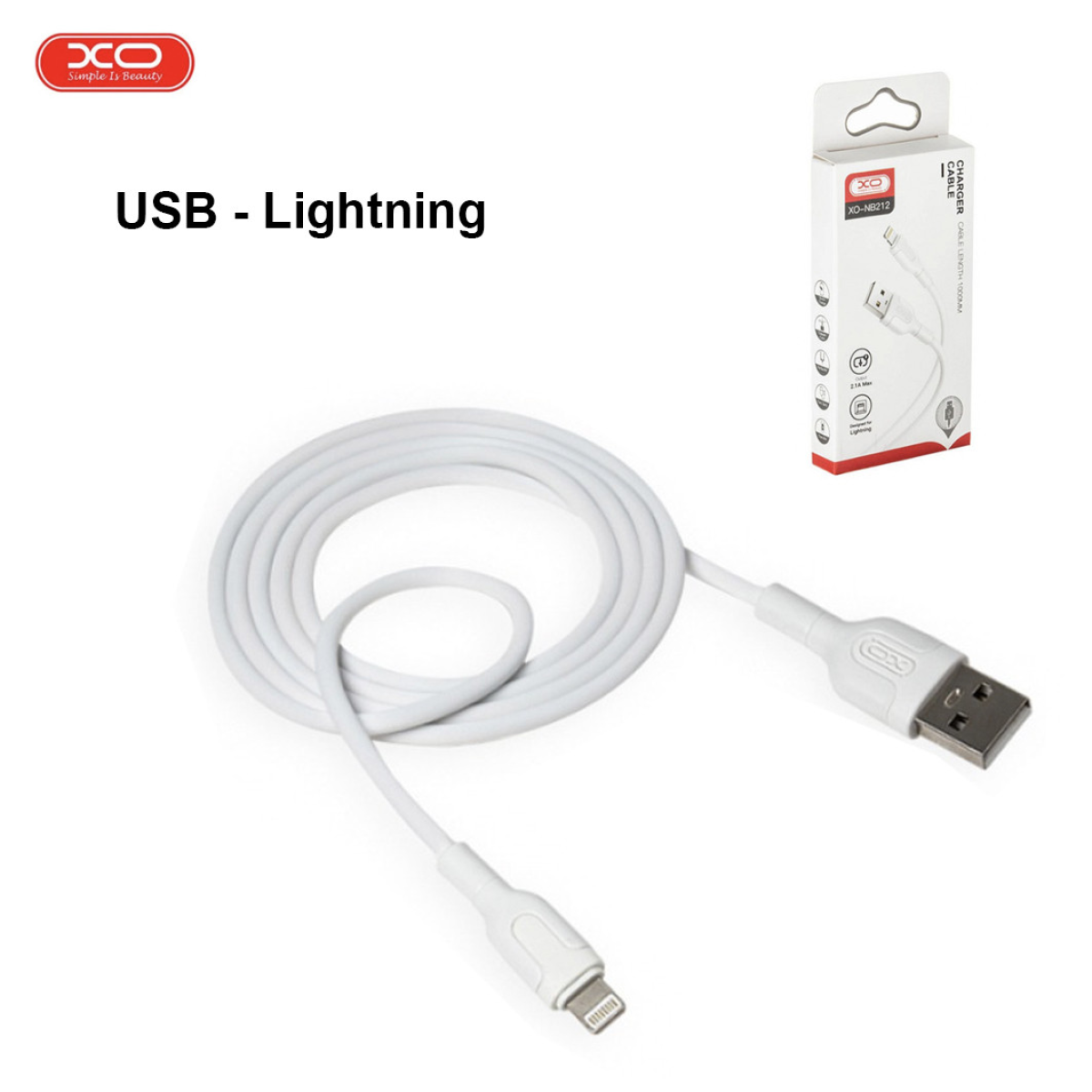 Кабель для заряджання та синхронізації USB XO NB212 USB - Lightning 1М Білий