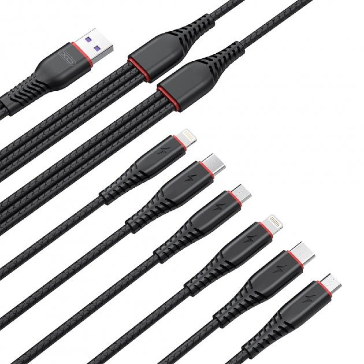 Кабель USB для зарядки універсальний XO NB196 6in1 USB - 2 x Lightning + MicroUSB + Type-C 1.2М Чорний