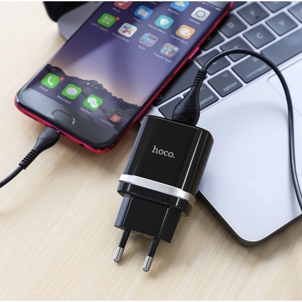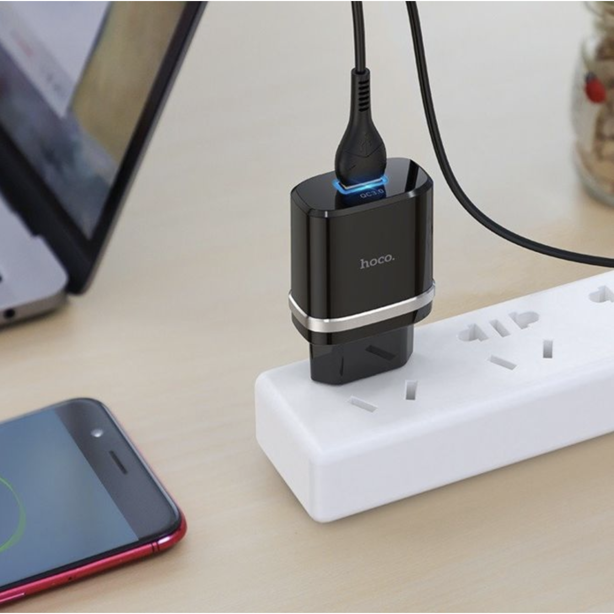 СЗУ зарядний пристрій HOCO C12Q Smart QC3.0 1USB/3A з кабелем для заряджання USB - Type-C Чорний