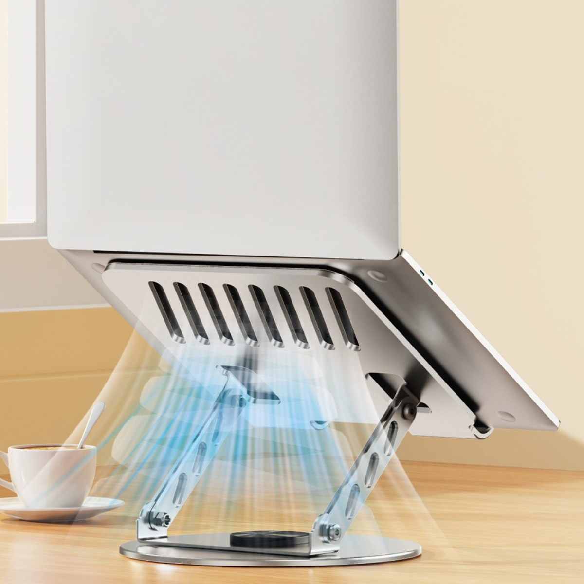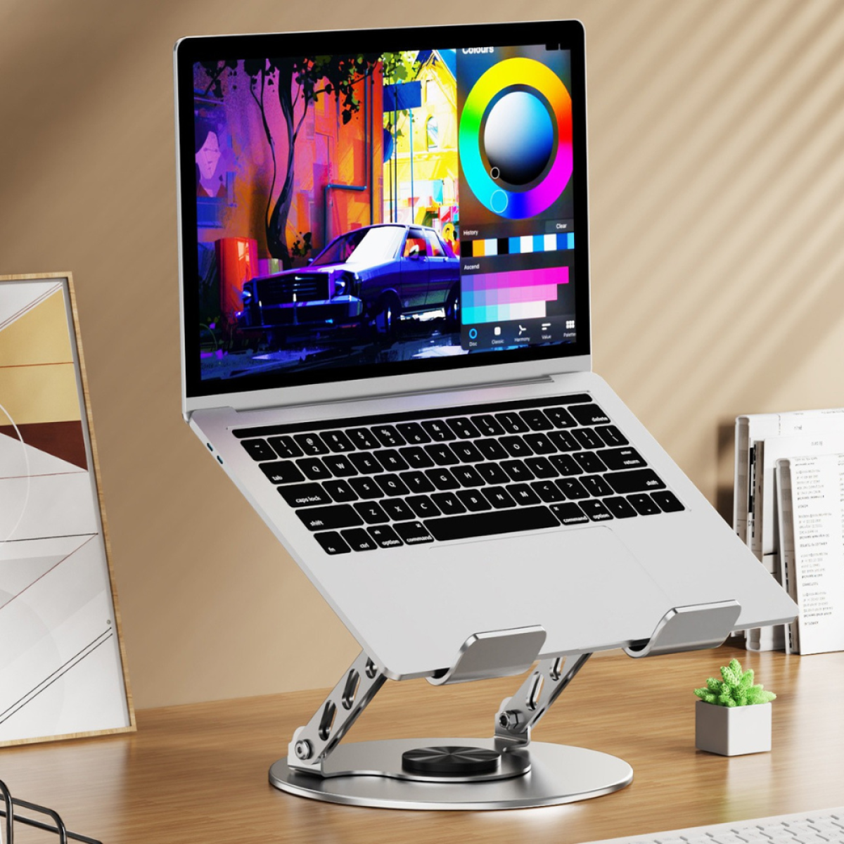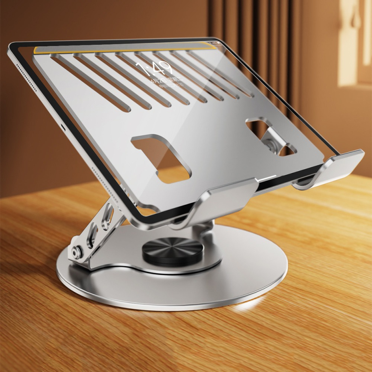 Підставка під ноутбук або планшет металева тримач холдер настільний для гаджетів з поворотом на 360 сіра