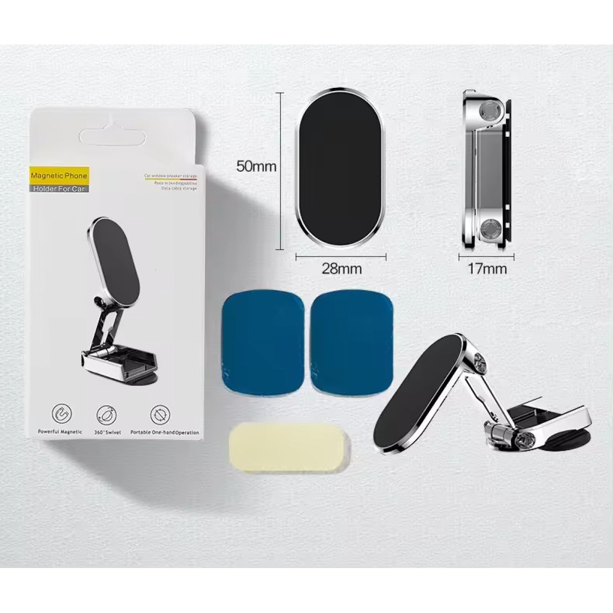 Універсальний і стильний дизайн Автомобільний тримач JKM02 поєднує в собі функціональність та елегантність. Він виготовлений із міцного металу, ABS-пластику та силікону, що забезпечує надійність і довговічність пристрою. Сучасний і стильний дизайн чудово впишеться в інтер“єр будь-якого автомобіля, додаючи нотку сучасності та стилю. Гнучкість і зручність використання Цей тримач вирізняється високою гнучкістю завдяки своїй регульованій і складній конструкції. Магнітне кріплення забезпечує надійну фіксацію вашого телефона, запобігаючи його переміщенню або випаданню під час поїздок. Розміри пристрою 50 х 28 х 17 мм дають змогу йому компактно розміститися в будь-якому місці вашого автомобіля. Багатофункціональність і обертання на 360 градусів JKM02 пропонує можливість обертання на 360 градусів, що дає змогу легко налаштувати кут огляду для зручного використання телефона. Ця функція робить його ідеальним для різних завдань, чи то навігація, чи то розмови по гучному зв“язку, чи то використання мультимедіа. Регульована конструкція і можливість обертання забезпечують максимальний комфорт і практичність під час використання.