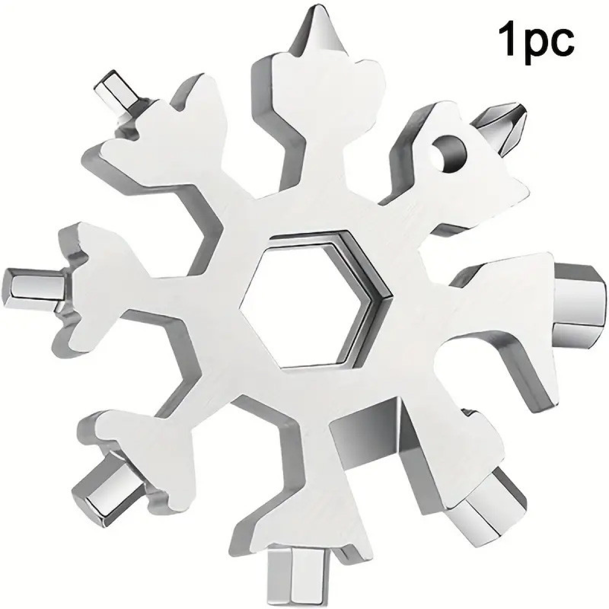 Багатофункціональний інструмент Сніжинка - це ідеальне рішення для тих, хто цінує функціональність та компактність. Виготовлений з нержавіючої сталі, цей інструмент поєднує в собі 18 різних функцій, включаючи викрутки, гайкові ключі та відкривач для пляшок. Завдяки своєму інноваційному дизайну у вигляді сніжинки, він легко поміщається в кишені або прикріплюється до ключів, що робить його незамінним для повсякденного використання та подорожей. Міцна конструкція забезпечує довговічність та надійність у будь-яких умовах. Цей універсальний інструмент стане чудовим подарунком для майстрів, мандрівників і всіх, хто любить бути готовим до будь-якої ситуації. Незалежно від того, чи потрібно щось відремонтувати, відкрити пляшку чи підтягнути гайку, багатофункціональний інструмент Сніжинка завжди буде під рукою, готовий допомогти.