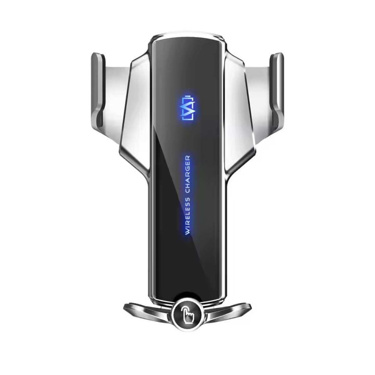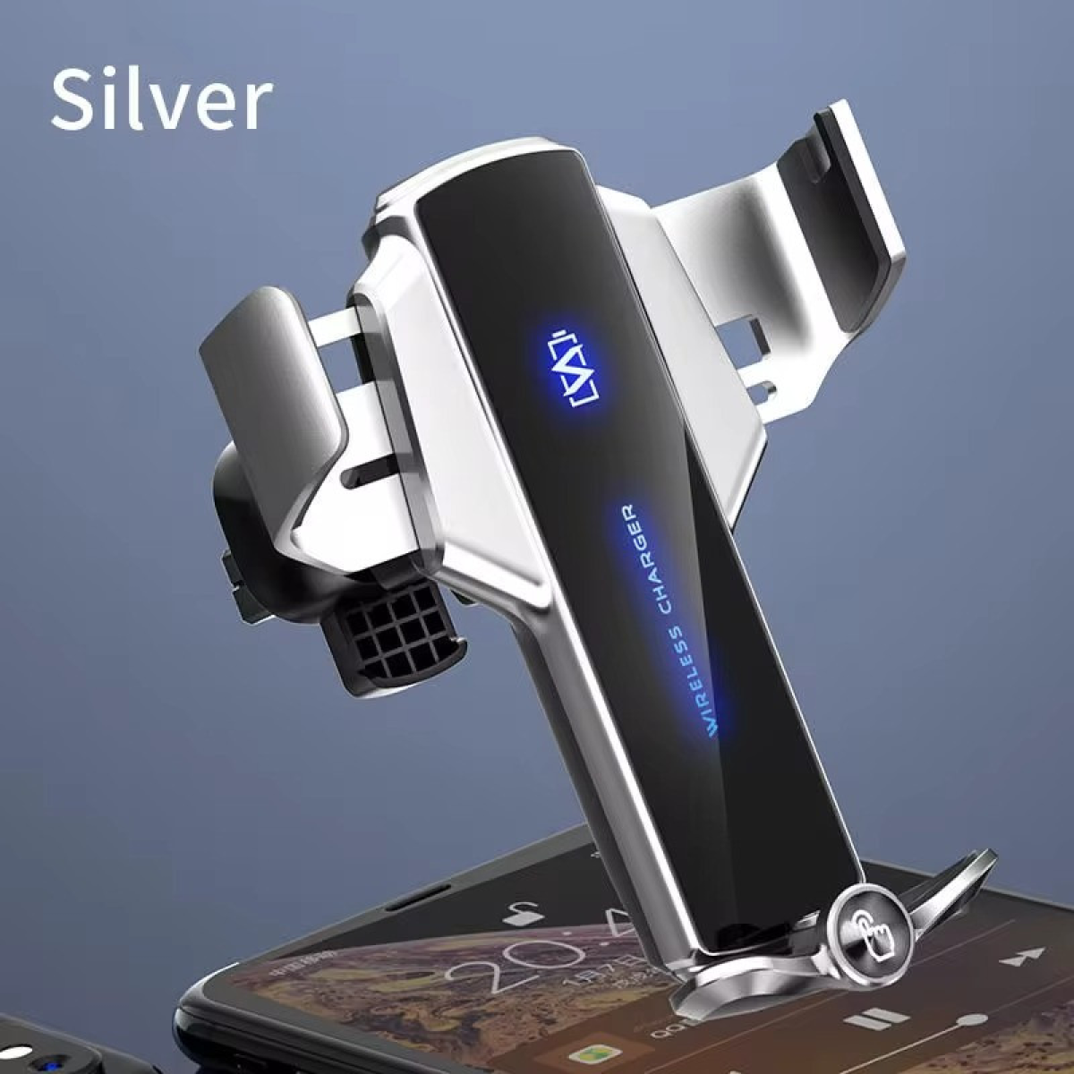 Автотримач для телефона з вбудованим акумулятором і бездротовою зарядкою 15W JP9, Type-C, сріблястий