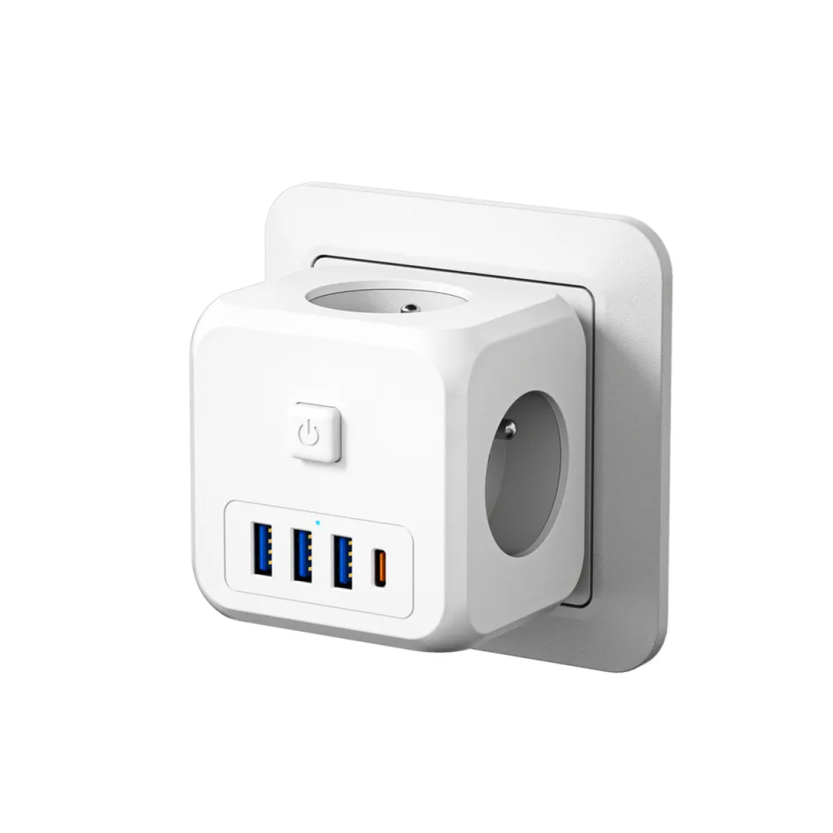 Мережевий фільтр 7в1 з вимикачем, USB Type-C і швидкою зарядкою, в кольорі білий