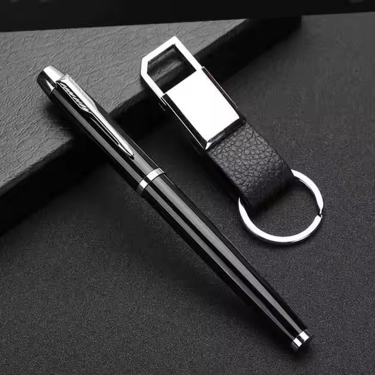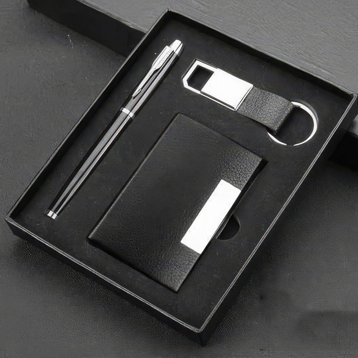 Комплект подарунковий 3в1 візитниця, брелок для ключів, ручка, бізнес набір аксесуарів для керівника, чорний