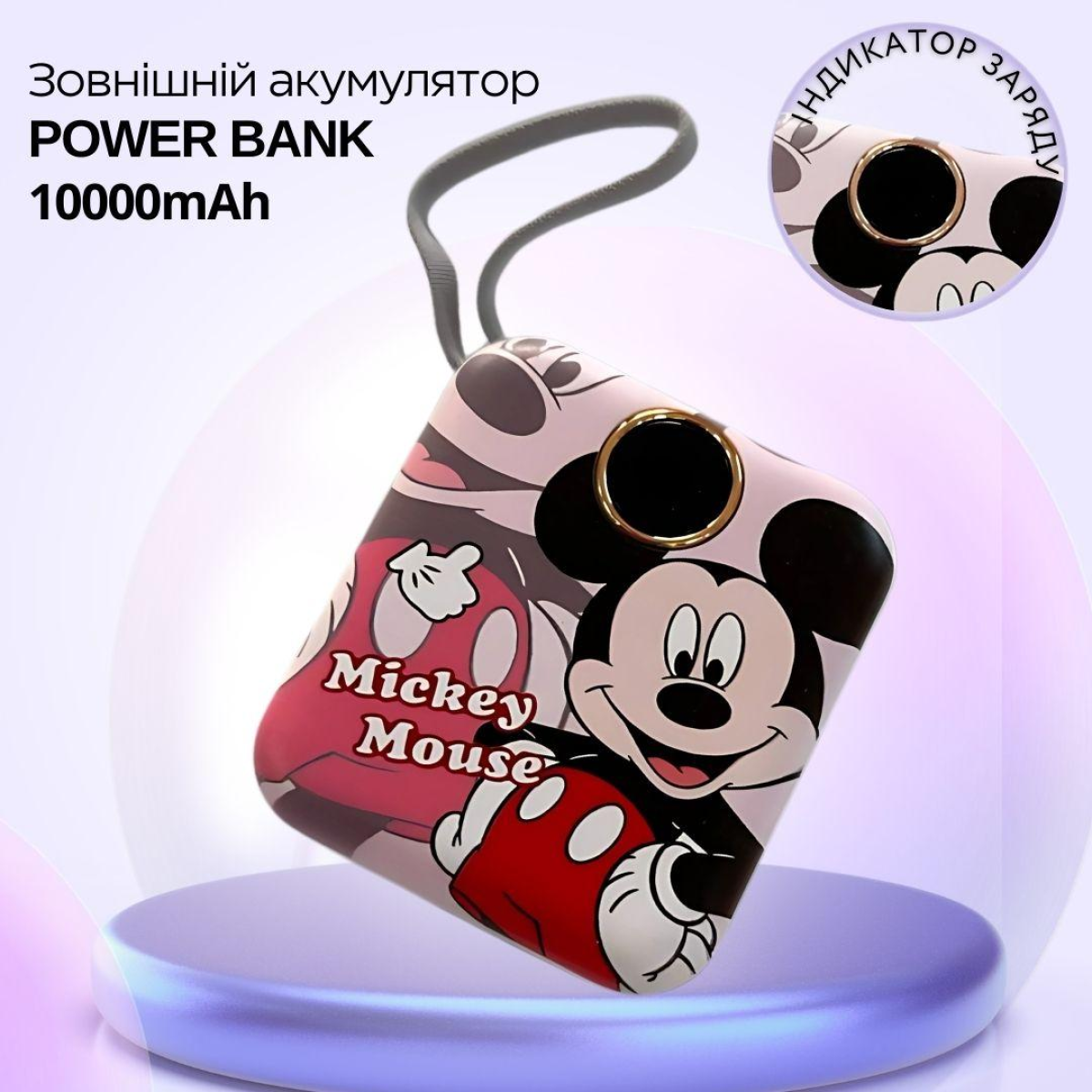 Павербанк зі швидкою зарядкою 10000мАг, Power Bank з двома вбудованими кабелями Lightning і Type-C, 120W Mickey