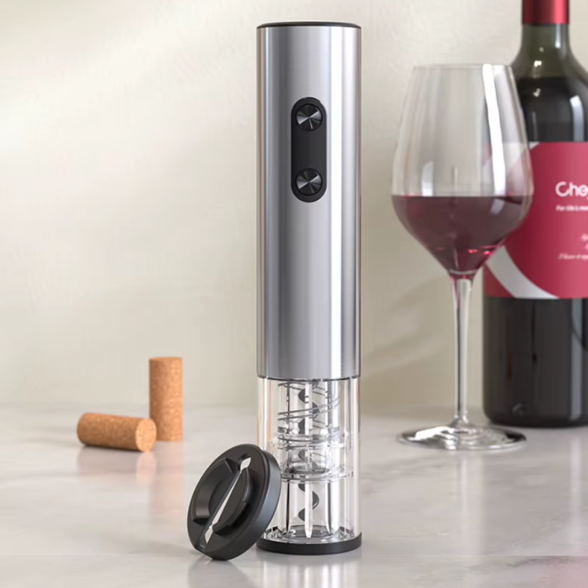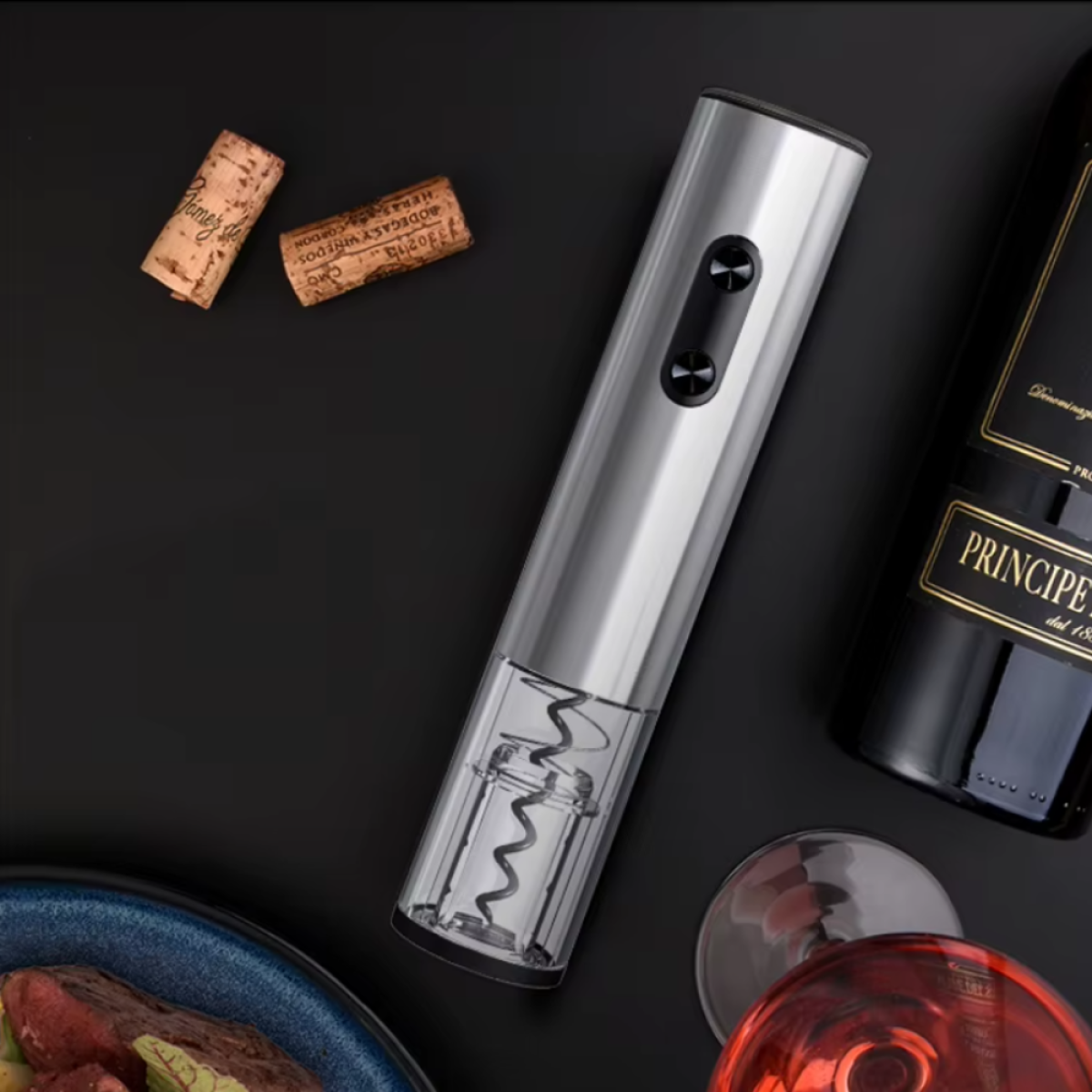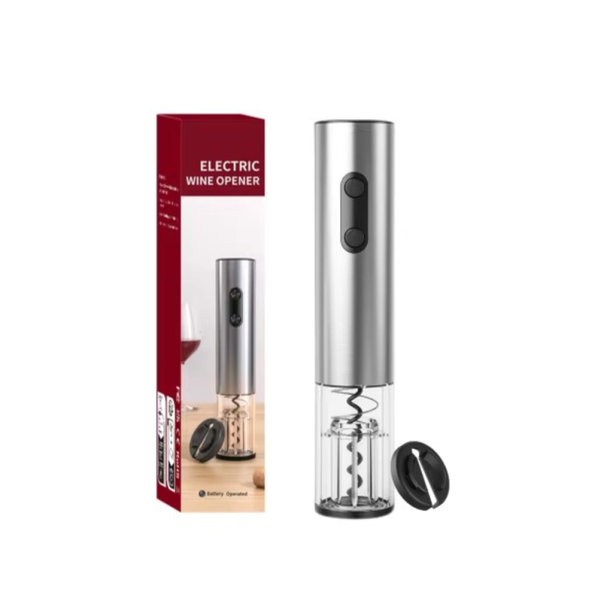 Штопор на батарейках електричний автоматичний портативний портативний електроштопор з ножем для фольги, сріблястий