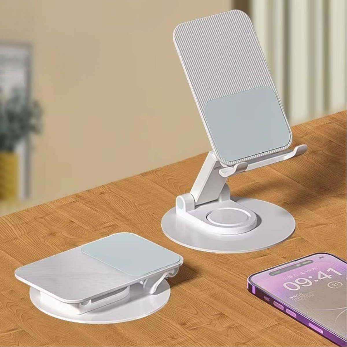 Підставка-тримач настільна для телефону або планшета, холдер для сматрфона, складна, з поворотом на 360 біла