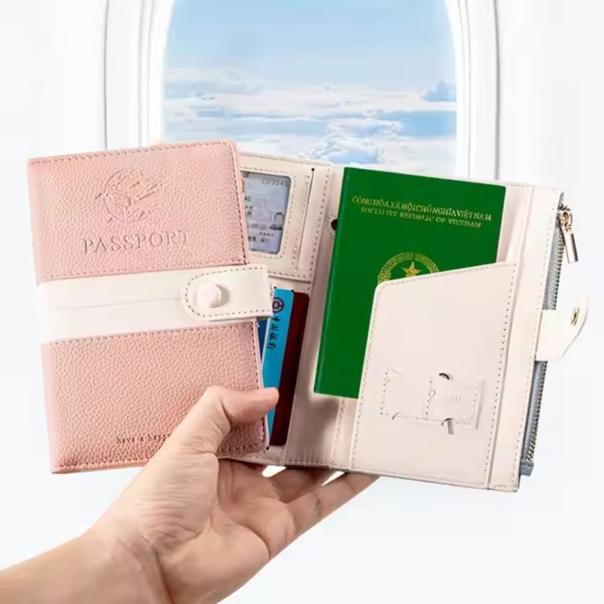 Жіночний і практичний органайзер для зберігання паспорта, карток, готівки та квитків. Виготовлений з м“якого, але міцного шкірозамінника в елегантному рожевому кольорі. Ідеальний для подорожей і повсякденного використання. Вбудований RFID-захист перешкоджає безконтактному зчитуванню даних з банківських та ідентифікаційних карток. Зручна магнітна застібка та функціональні відділення роблять органайзер незамінним аксесуаром. Особливості: Колір: рожевий Матеріал: еко-шкіра (шкірозамінник) RFID-захист від NFC-сигналів Місткість: 1–2 паспорти, картки, квитки Прозоре відділення для посвідчення Кишеня на блискавці для готівки Відділення для SIM-карт Застібка на магнітній кнопці