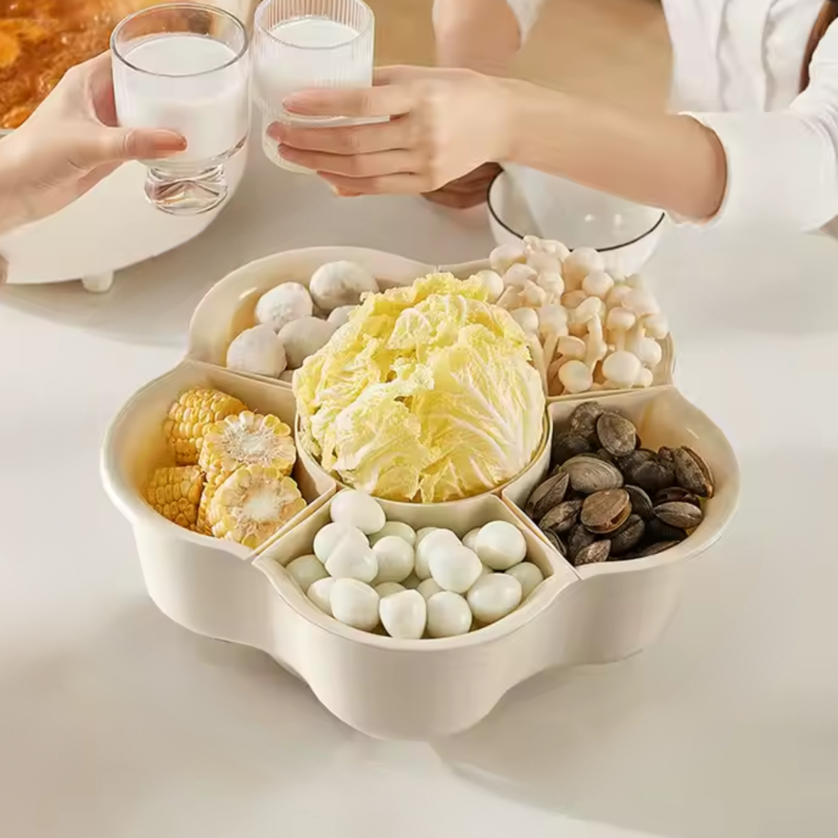 Таця для сервірування їжі, органайзер з обертанням, контейнер для сервірування та миття, бежевий колір