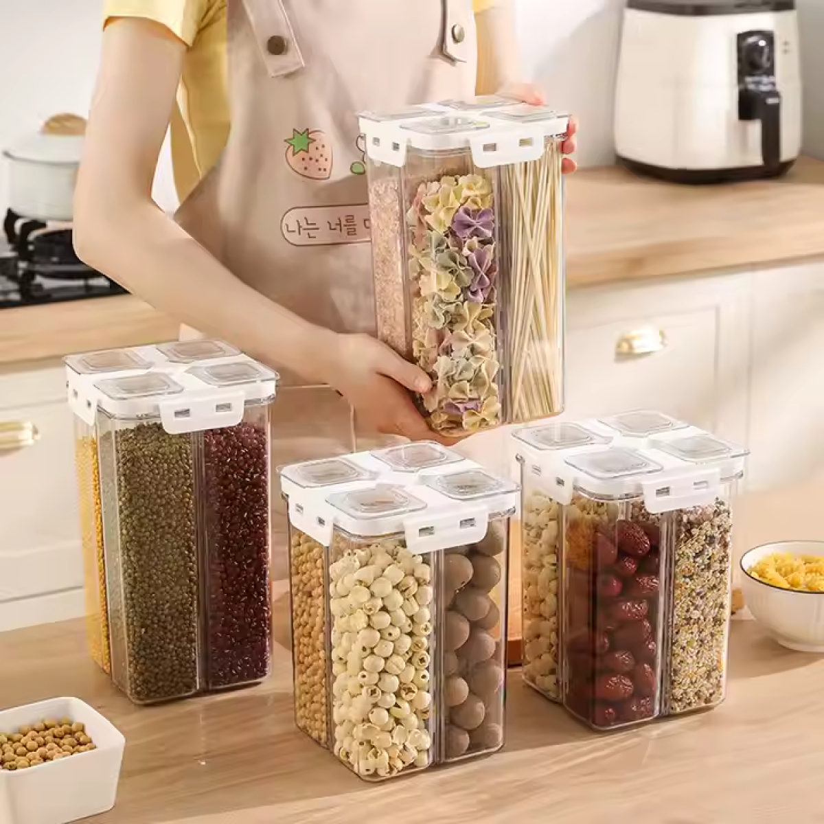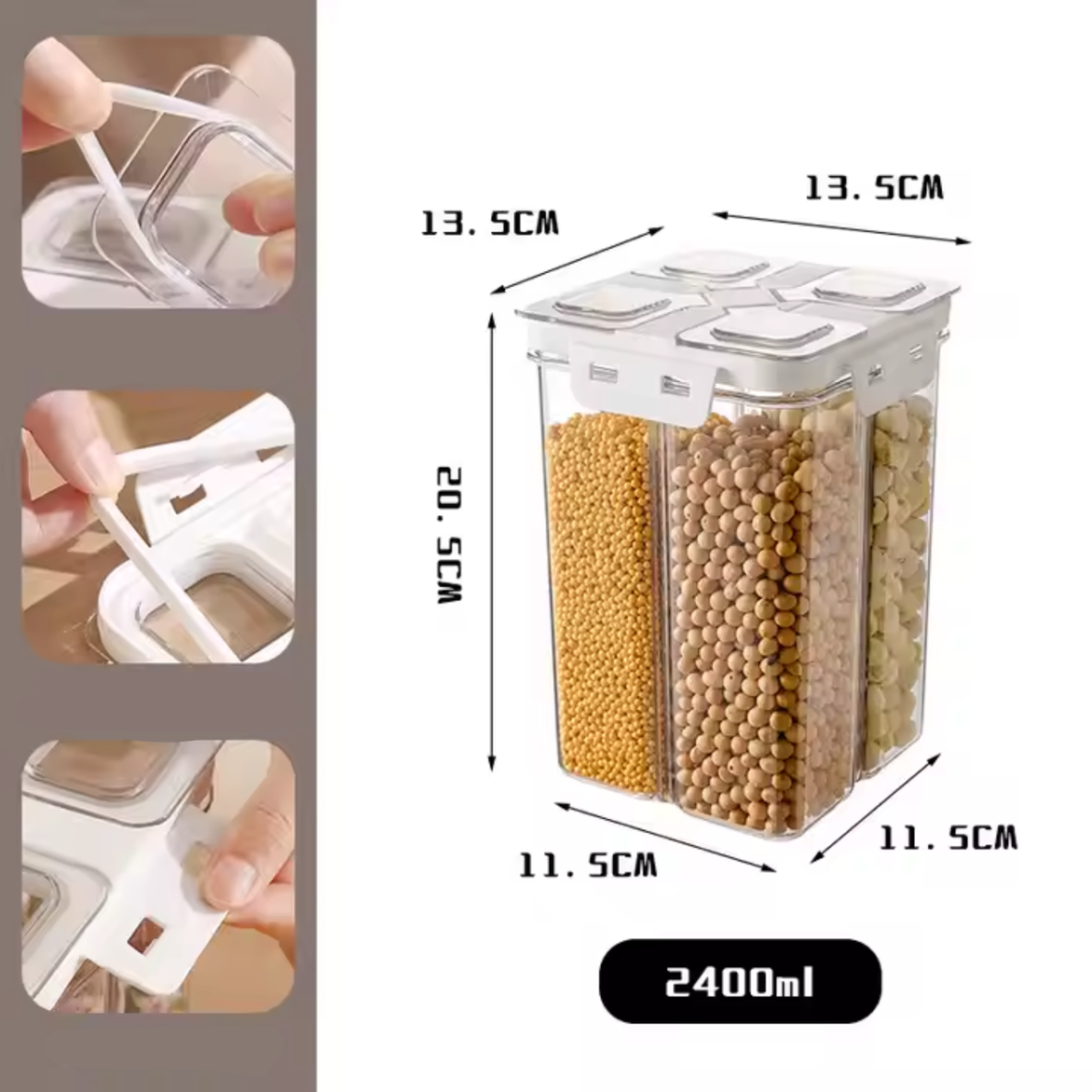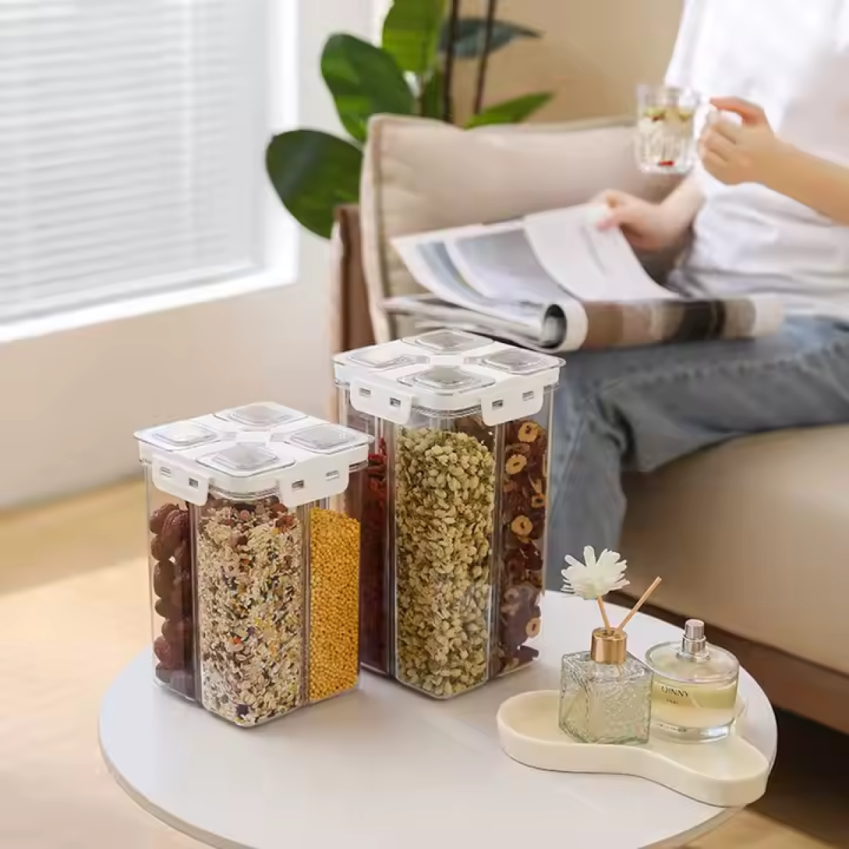 Прозорий контейнер для зберігання, герметичний кухонний органайзер на 4 відділи, об“єм 2.4 л, розмір 20.5×13.5 см