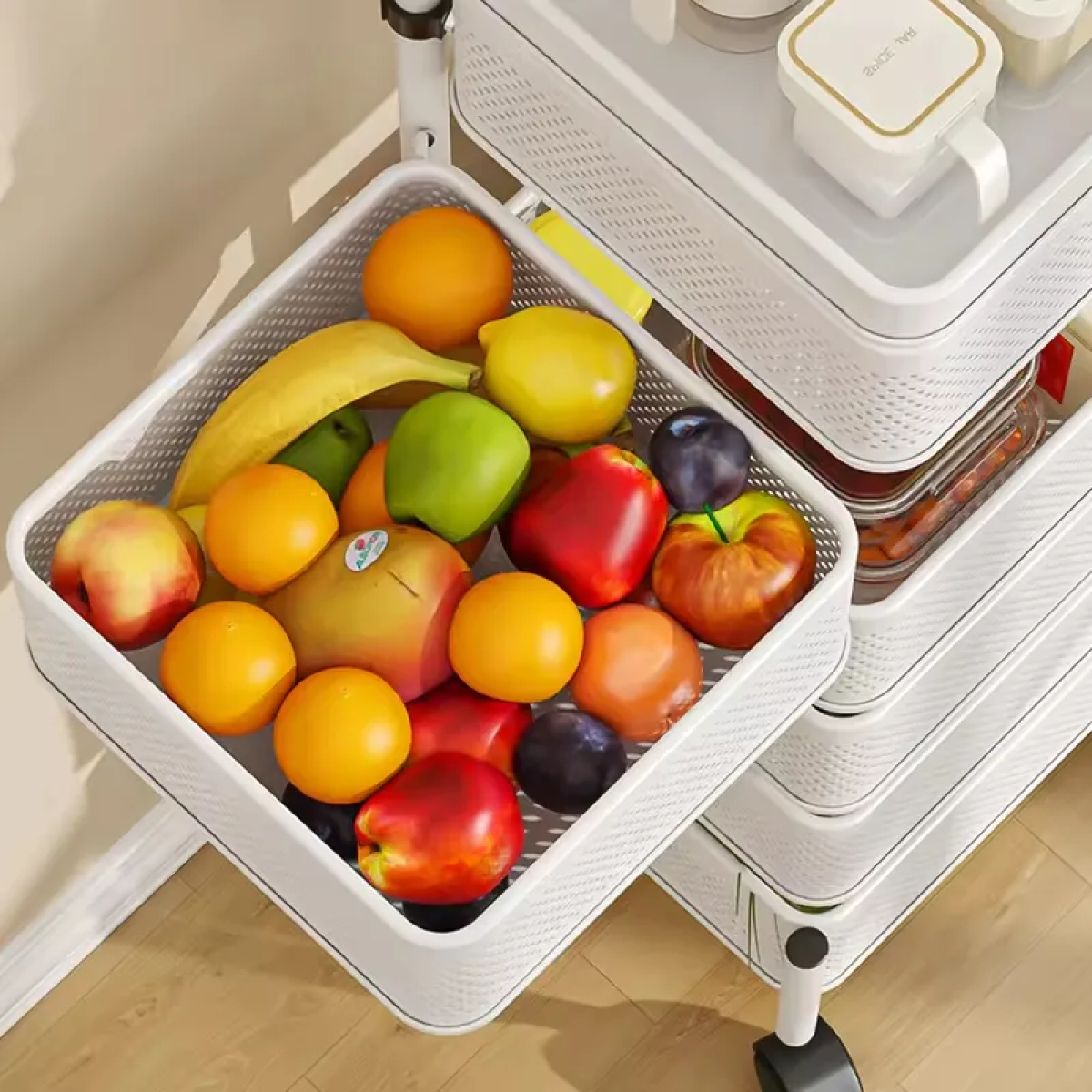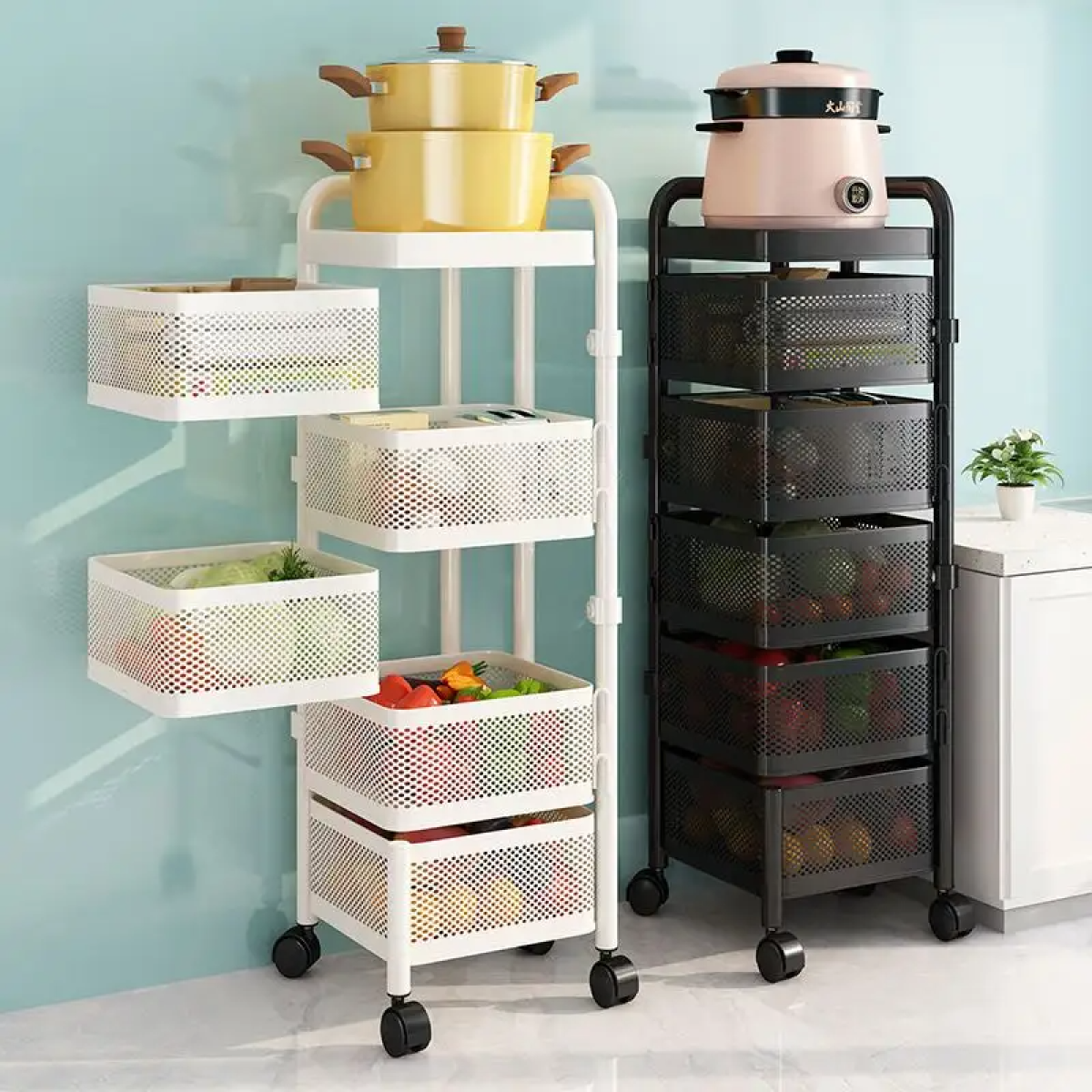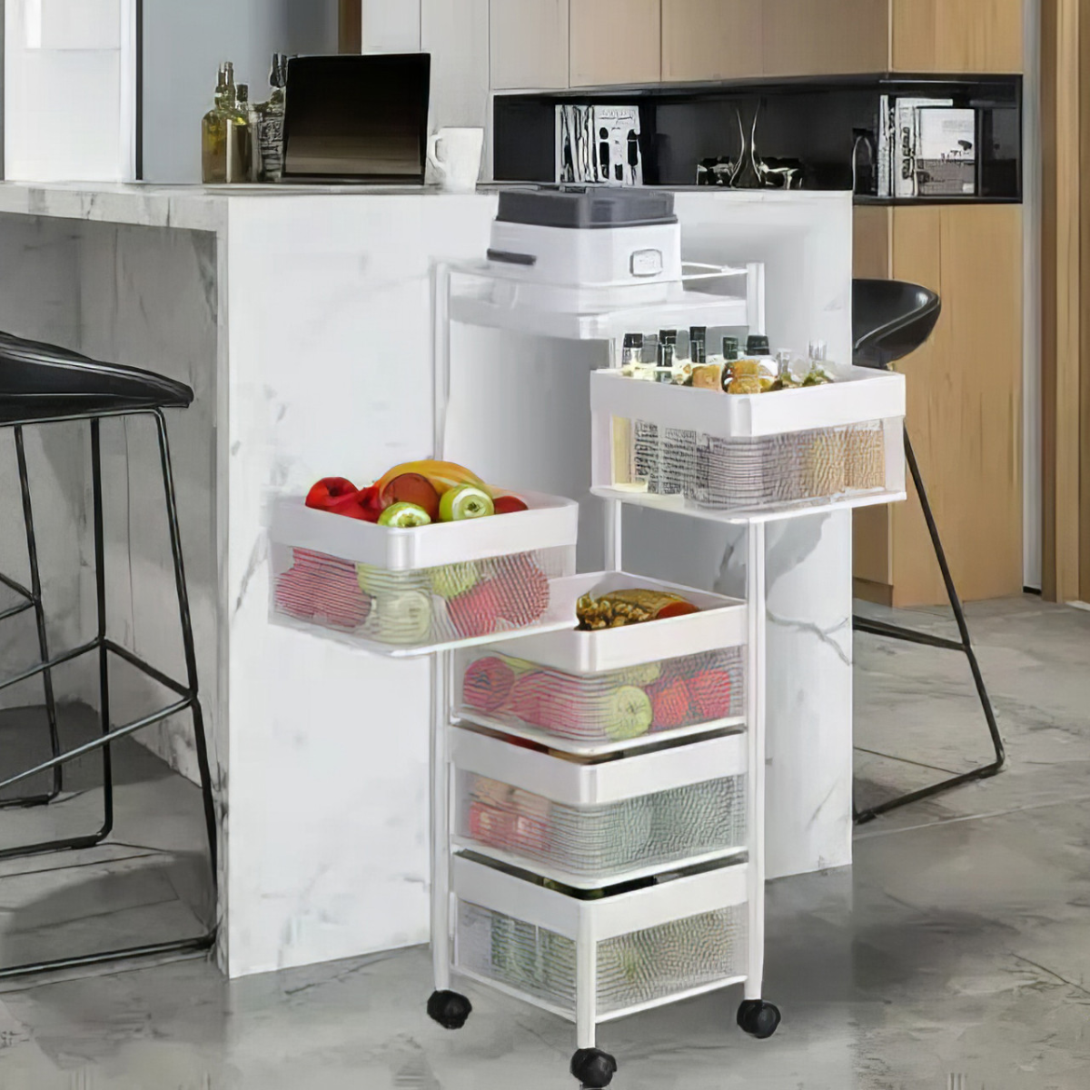 Металева полиця етажерка, підлоговий стелаж на колесах для зберігання, білий колір