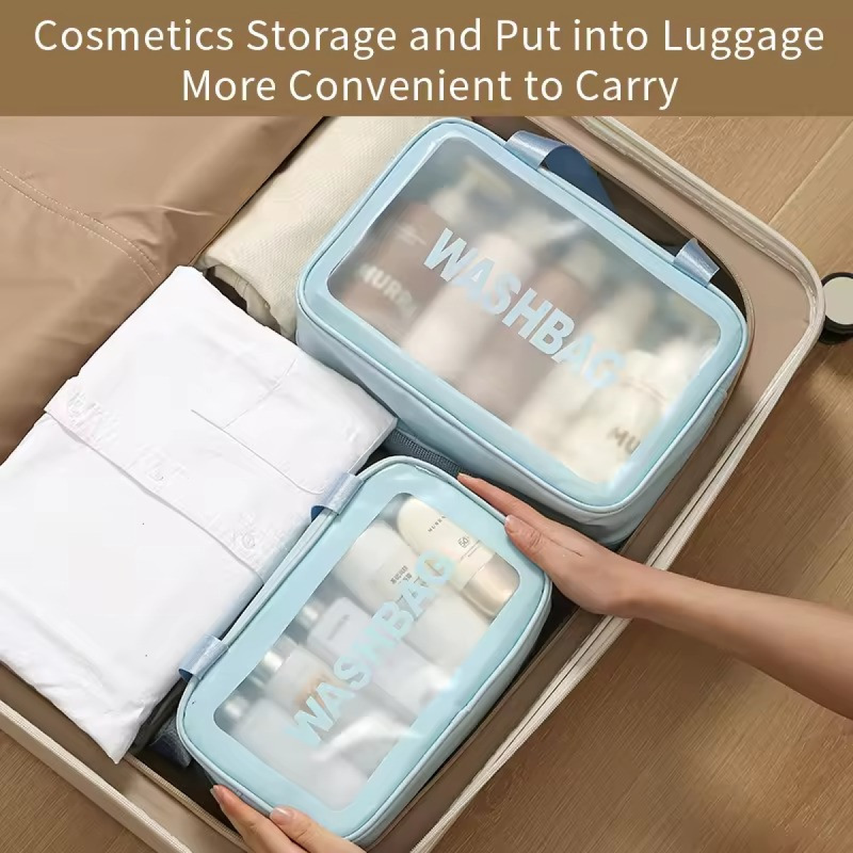 Елегантний комплект косметичок для ванної кімнати Цей комплект із двох косметичок зі штучної шкіри чудово впишеться в інтер“єр вашої ванної кімнати, забезпечуючи ідеальне зберігання й організацію вашого косметичного та гігієнічного приладдя. Кожна косметичка розділена на два відділення - одне для сухих предметів, інше для вологих, що робить їх зручними і функціональними. Зручний поділ для оптимальної організації Перше відділення призначене для зберігання сухих предметів, таких як пензлі, помади, туш для вій і компактні пудри. Воно обладнане різними кишенями і відділеннями для зручного розміщення і легкого доступу до всіх необхідних косметичних аксесуарів. Друге відділення спеціально призначене для вологих предметів, як-от губки, серветки та мочалки, з інтегрованими отворами для вентиляції, що допомагає запобігти скупченню вологи та забезпечити швидке висихання. Стильний дизайн і висока якість матеріалів Косметички виконані з міцної та легкої у догляді штучної шкіри, яка легко чиститься і не боїться вологи, ідеально підходить для ванної кімнати. Їхній елегантний дизайн додасть стилю і затишку у ваш інтер“єр. Кожна косметичка обладнана зручними ручками для легкості в перенесенні, що робить їх ідеальними як для використання вдома, так і для подорожей. Цей комплект не тільки допоможе вам організувати простір у ванній, а й стане стильним акцентом у вашому домі.