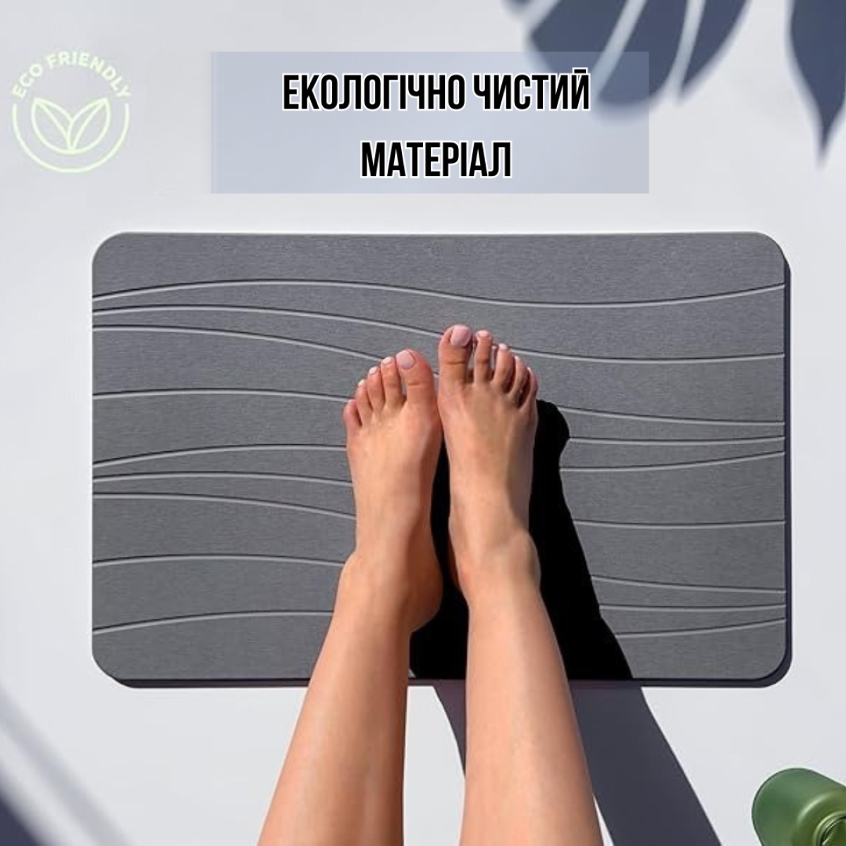 Килимок універсальний: він підходить для ванної, душової, кухні, передпокою, а також може використовуватися в зоні годування домашніх тварин. Безворсова поверхня перешкоджає накопиченню пилу та бруду, забезпечуючи простоту догляду - достатньо протерти вологою тканиною. Килимок вбирає вологу за лічені секунди, унеможливлюючи вогкість, плісняву та неприємні запахи.