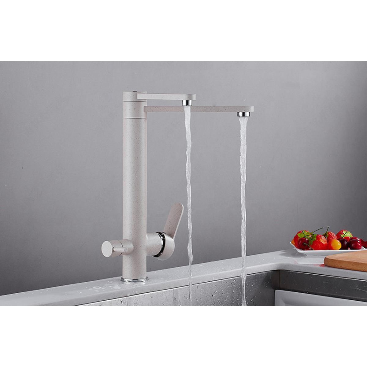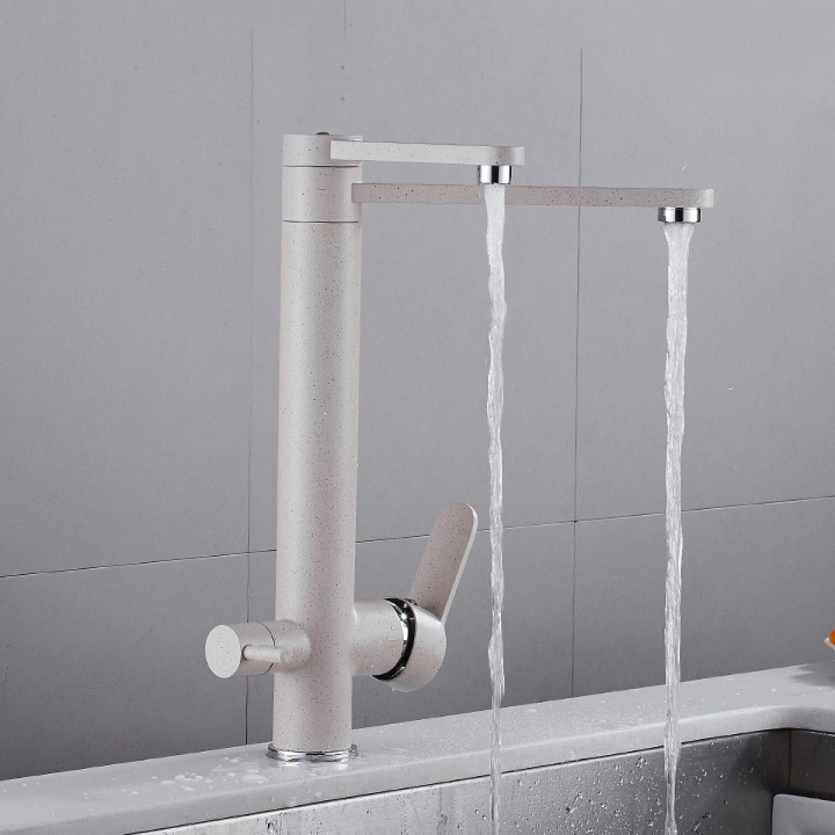 Змішувач для кухні для фільтрованої води двоважільний, кран кухонний WanFan вертикальний монтаж Нікель