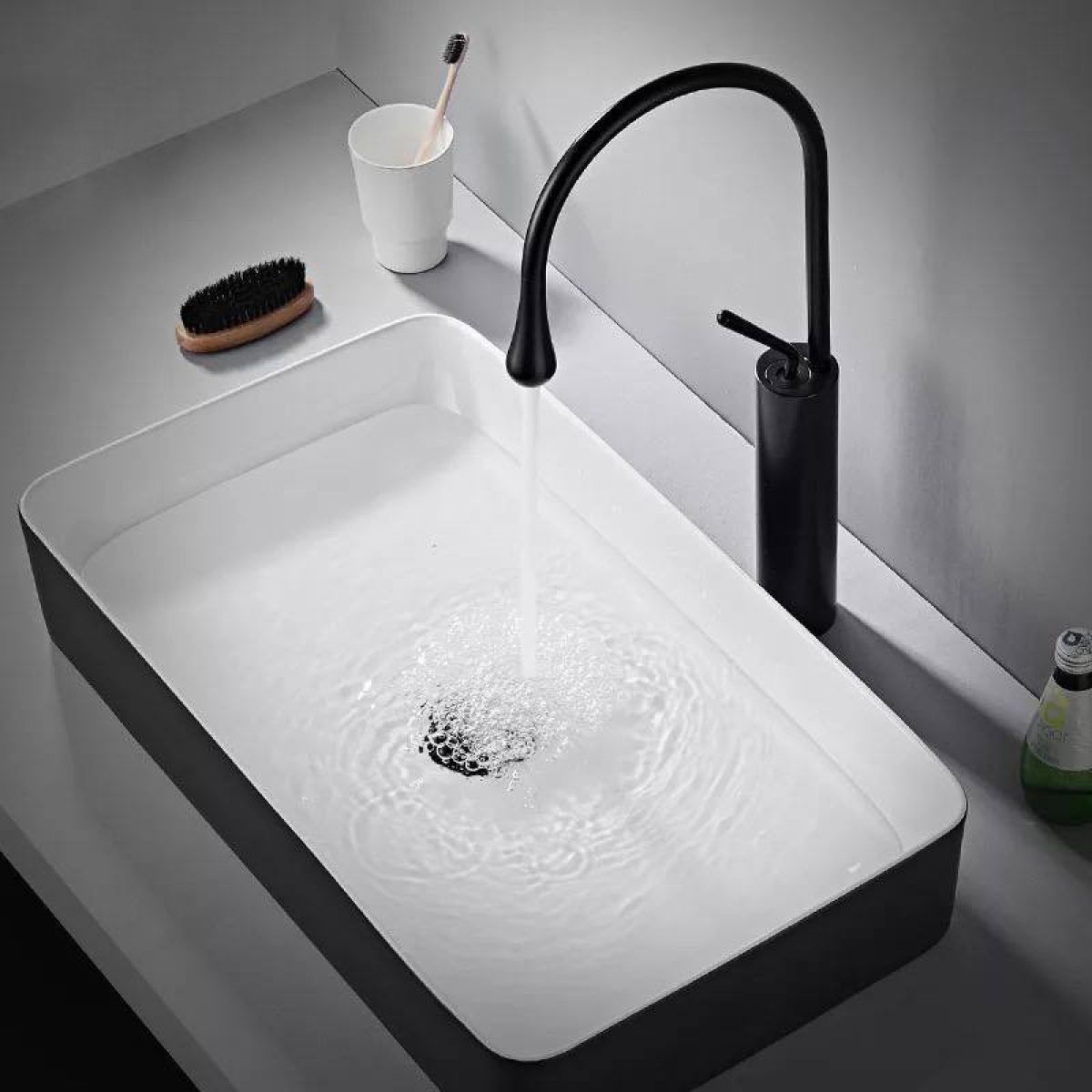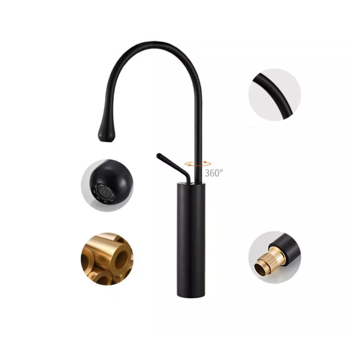 Сучасний чорний змішувач для раковини для гарячої та холодної води WanFan, Латунь