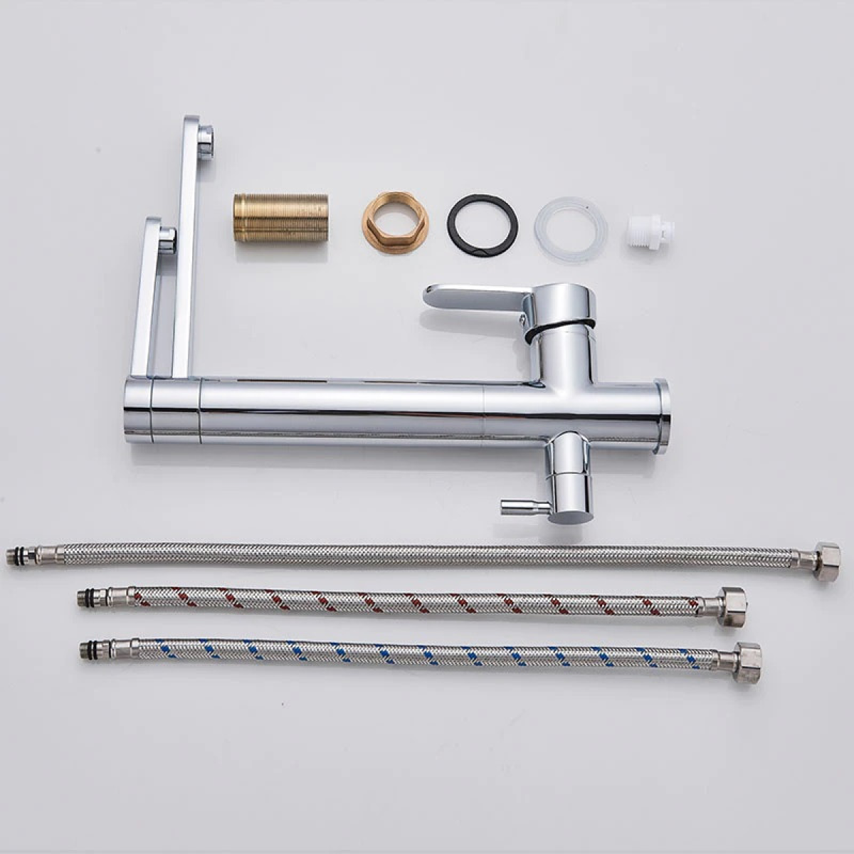 Змішувач для кухні WanFan двоважільний - це новий і сучасний девайс для кухні, який дозволяє використовувати як проточну воду, так і фільтровану. Змішувач для кухні WanFan виготовлений із багатокомпонентного сплаву – латуні. Головна особливість змішувача WanFan – це вихід для фільтрованої води з перемикачем, який дозволяє одним рухом руки набрати очищену воду. Характеристики: Стиль: сучасний Тип: змішувач для кухні Матеріал: латунь Тип установки: на палубі Кількість отворів для встановлення: один отвір Холодна та гаряча вода: Так Картридж: керамічний 35 мм Кількість ручок: 2 Колір: хром