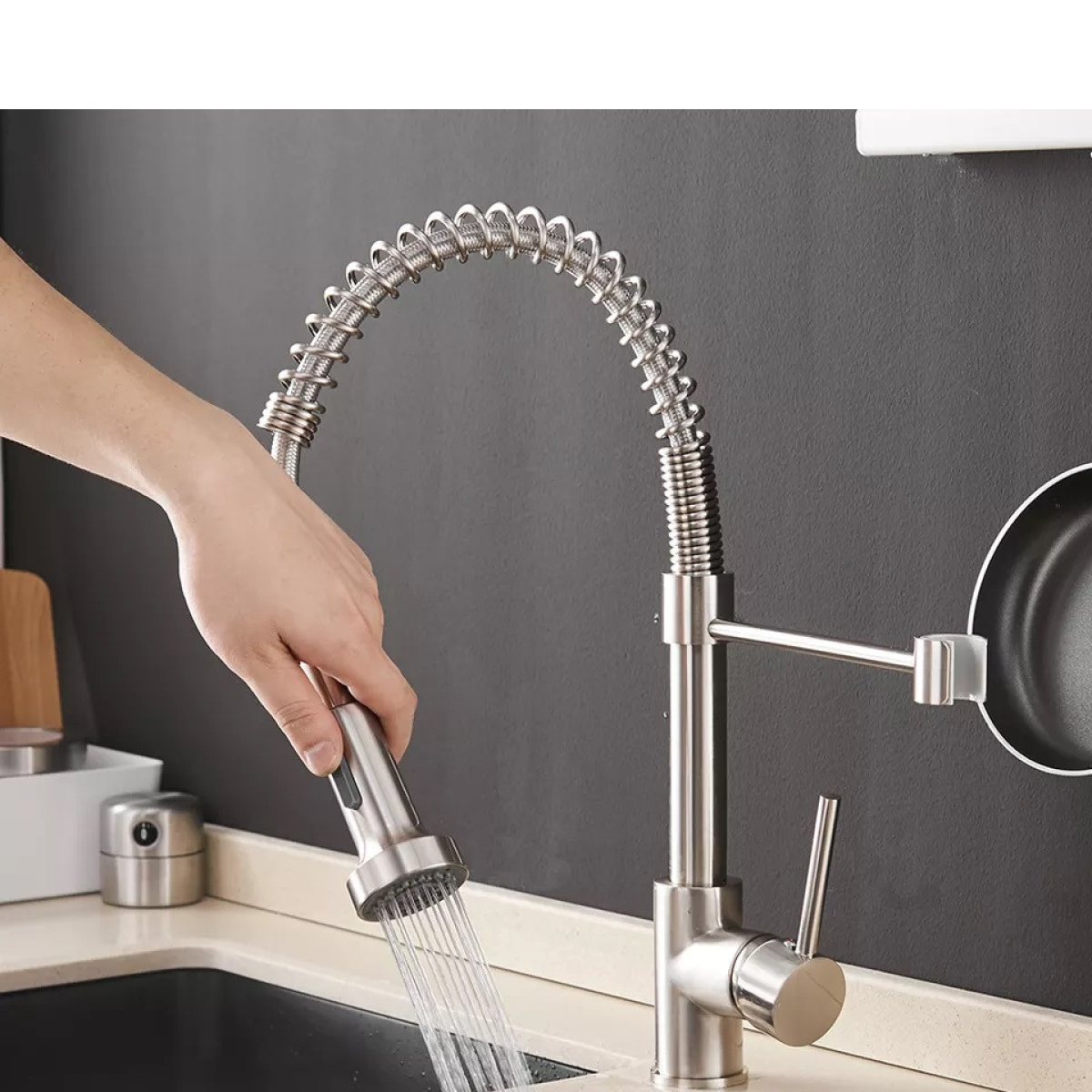 Кухонний змішувач з висувним зливом, одноважільний кран для раковини на два режими води WanFan Хром