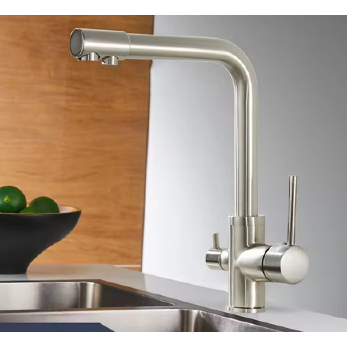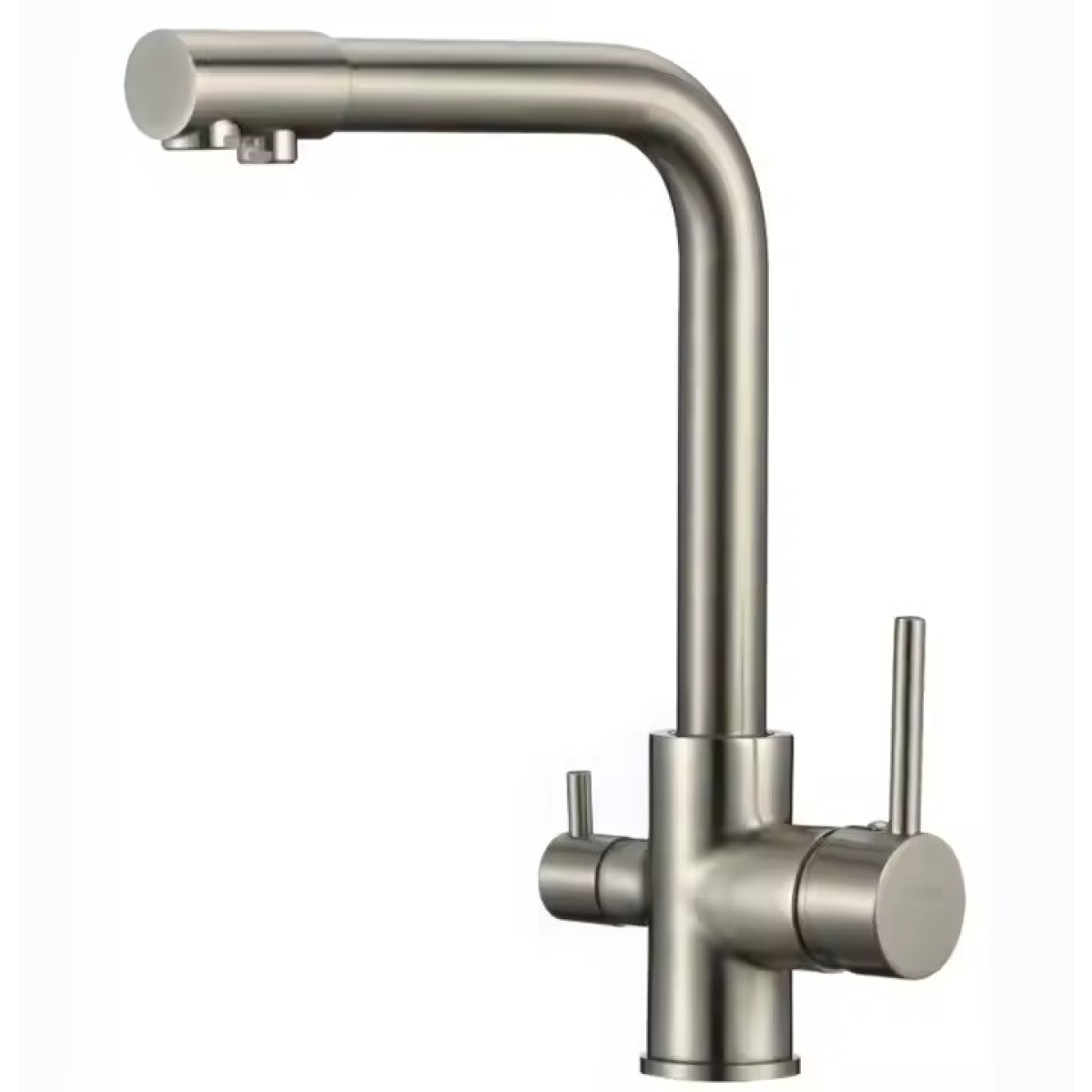 Змішувач для кухні з підключенням до фільтра латунний, з матовим нікелем з бічними важелями, матовий нікель
