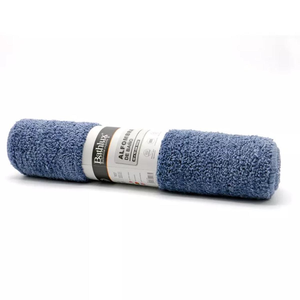 Килимок для ванни та душу Bathlux м“який тканинний прогумований, нековзкий Блакитний