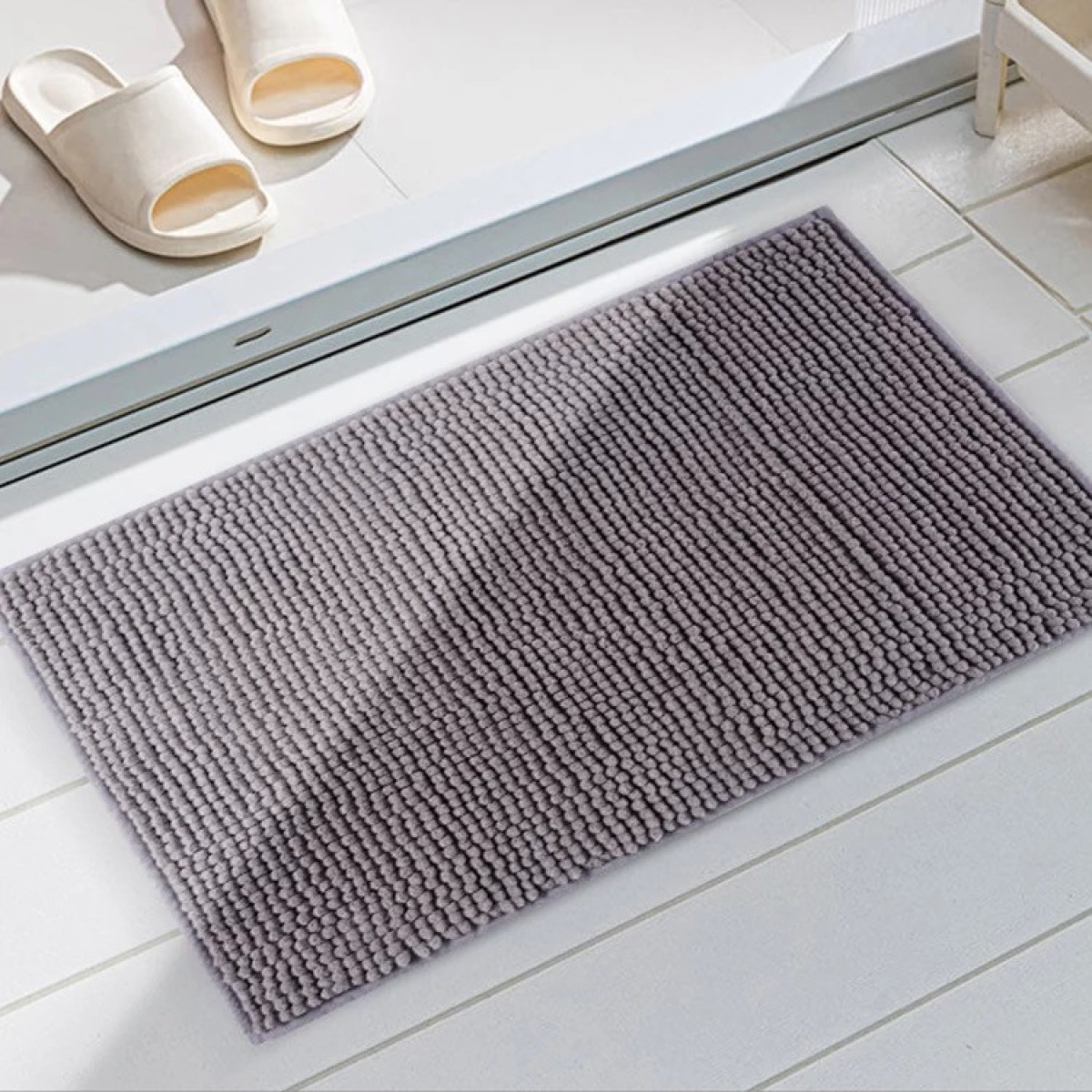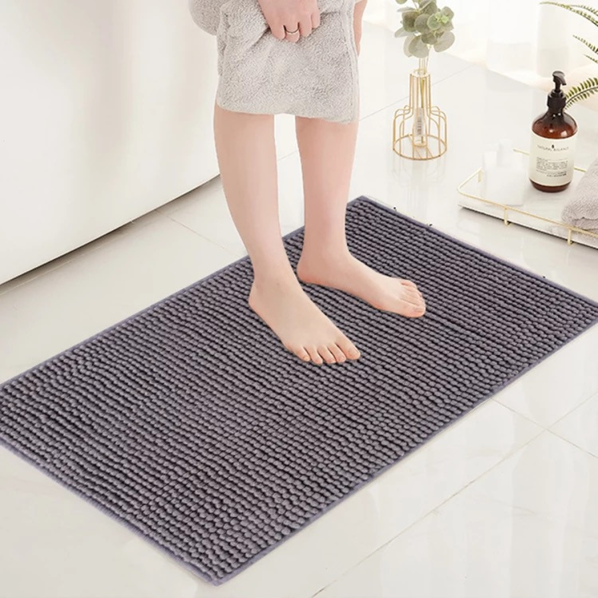 Килимок для ванни та душу з м“якого довгого ворсу Bathlux ковзкий, прогумований Сірий