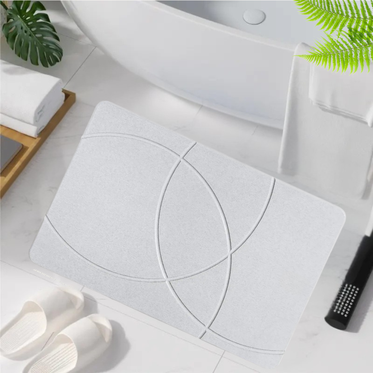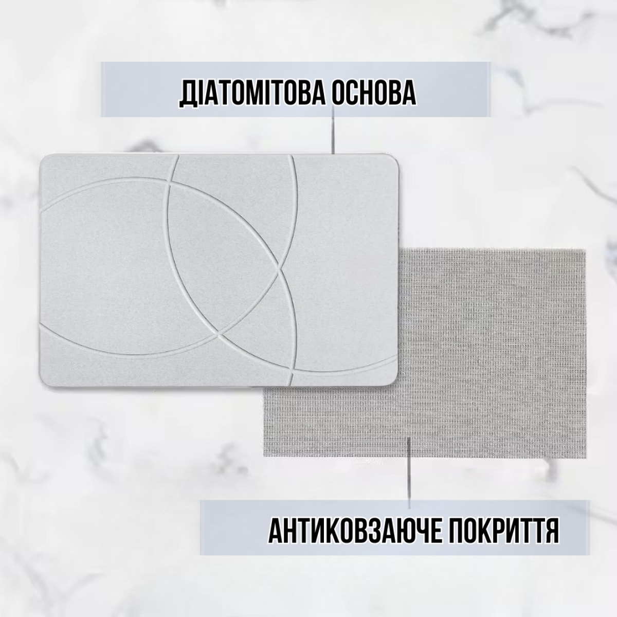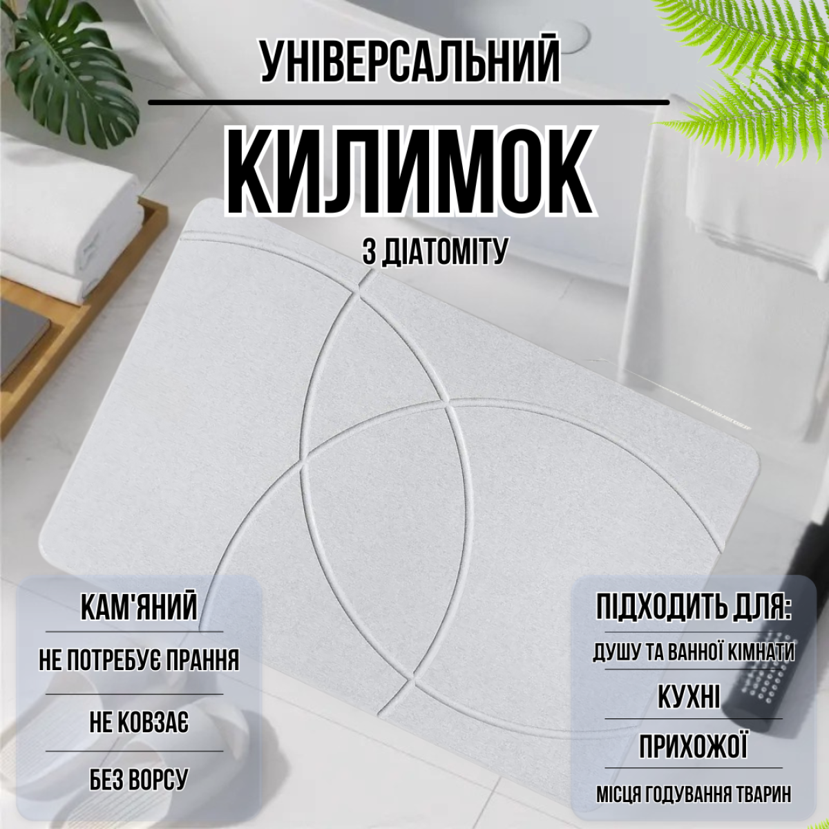 Килимок універсальний для душу та ванної кімнати, кухні, передпокою кам“яний 60х39 см з діатоміту колір біло-сірий