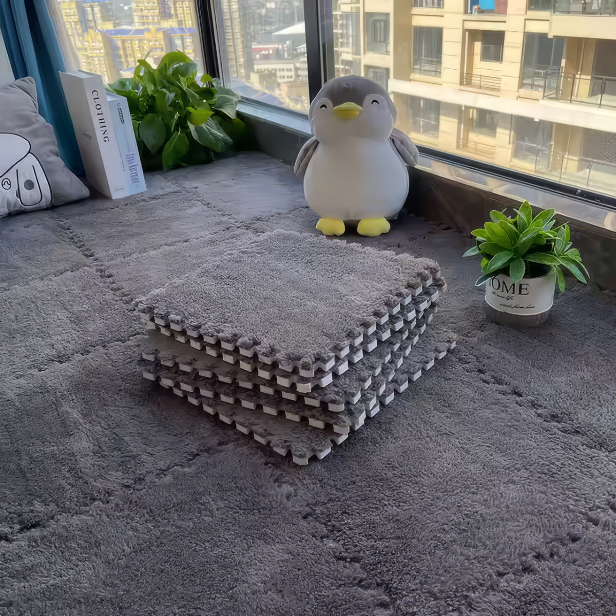 Підлога-пазл плюшева 30x30см, тепла підлога, дитячий мат, термокилимок для дому, колір сірий