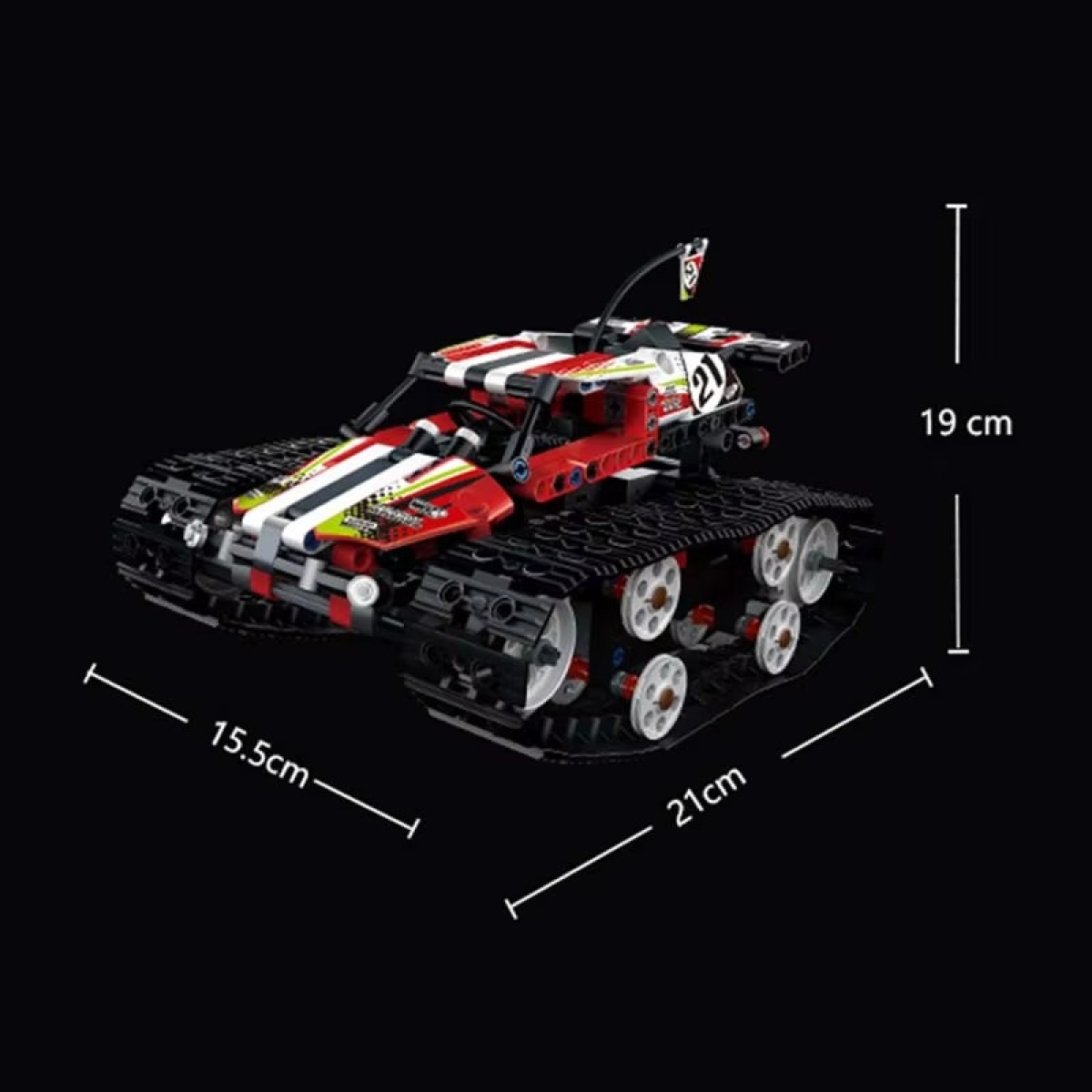 Захоплюючий світ конструювання Конструктор гоночна машина на гусеничному ходу з дистанційним керуванням - це ідеальний вибір для юних інженерів віком від 8 років. Цей набір, що складається з 415 деталей, надає безліч можливостей для творчості та конструювання, даючи змогу дітям створити унікальну модель гоночного автомобіля. Компактні розміри зібраної моделі (21 х 15,5 х 19 см) роблять її зручною для гри вдома або на вулиці. Повний контроль і зручна зарядка Ця гоночна машина оснащена дистанційним керуванням, яке дає змогу керувати моделлю на відстані, додаючи елемент реалізму в гру. Зарядка пристрою здійснюється через USB 5V, що робить процес зарядки зручним і швидким. Час повної зарядки складає всього 60 хвилин, після чого автомобіль готовий до нових перегонів. У комплекті Набір містить усі необхідні компоненти для створення та керування гоночною машиною, а саме: 415 деталей для складання, USB-кабель для зарядки і пульт дистанційного керування. Цей конструктор стане чудовим подарунком для дітей, які люблять техніку та конструювання.