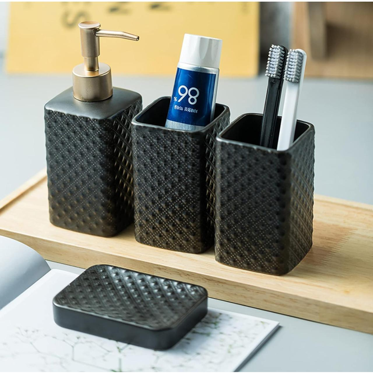 Комплект керамічних аксесуарів для ванни: дозатор, мильниця, стакани Чорного кольору