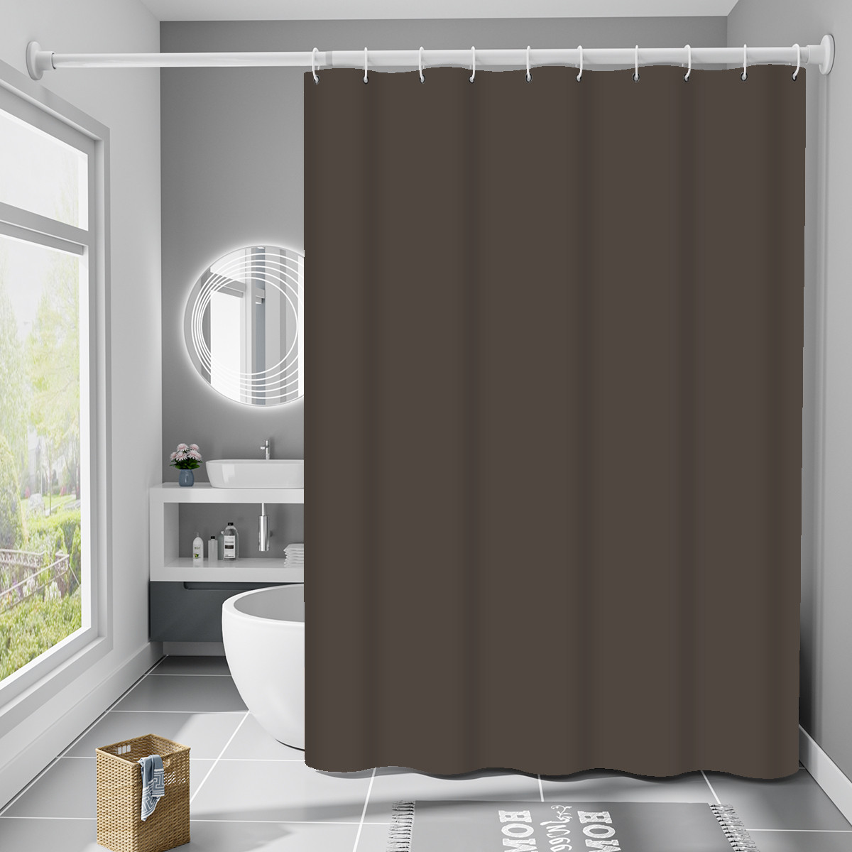Шторка для ванни з поліестеру водонепроникна Bathlux 180x180 см з кільцями, фіранка для ванної кімнати