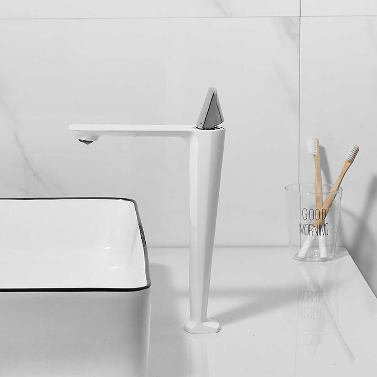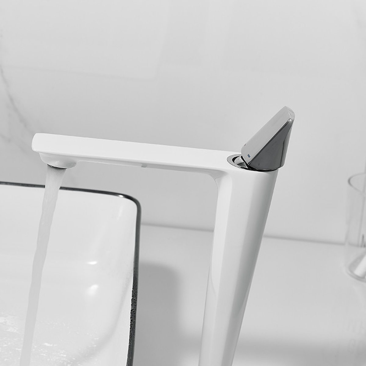 Змішувач для раковины, дизайнерський кран у ванну одноважільний монтаж WanFan для ванни Білий-хром, Латунь
