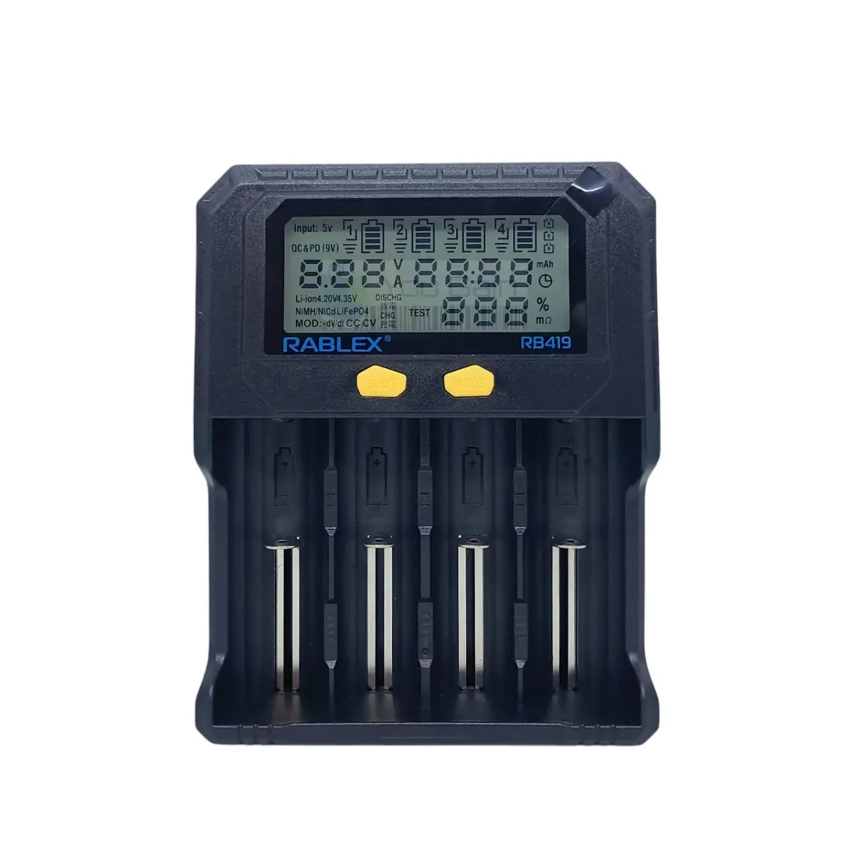 Автоматичний зарядний пристрій RABLEX 401 дає змогу заряджати різні формати акумуляторів — від простих і популярних типорозмірів АА, ААА до Li-ion починаючи від 14500 до 26700, включно з найпопулярнішим форматом — 18650. Пристрій просто в керуванні — Вам досить вставити акумулятори в гнізда — інше Rablex зробить сам.
