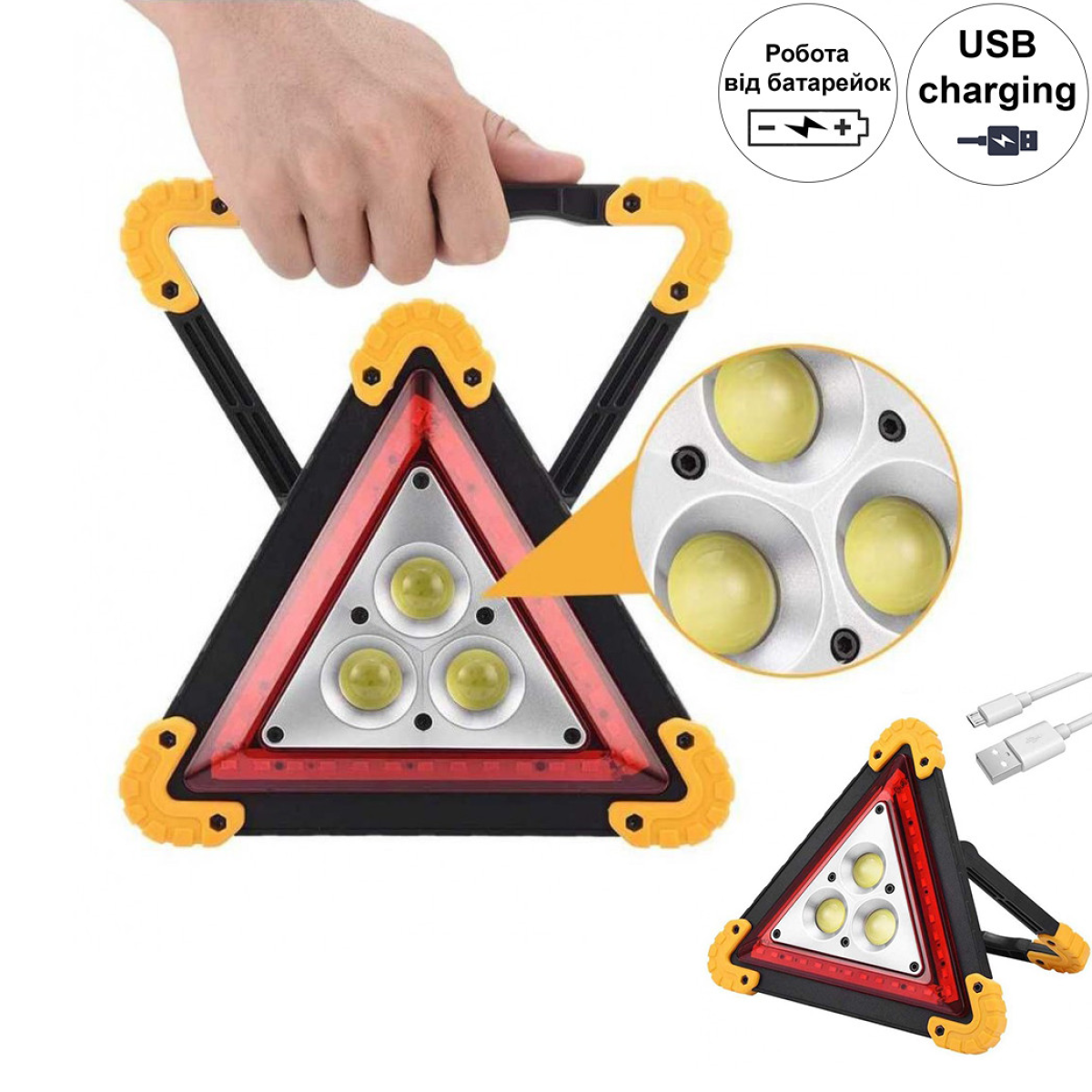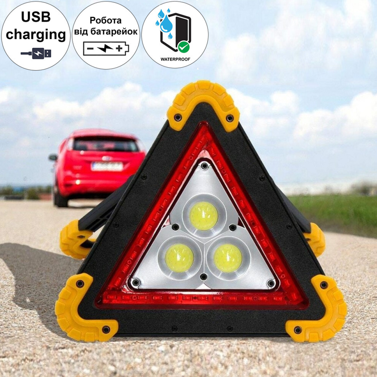 Трикутний попереджувальний знак – хороший помічник для безпеки дорожнього руху, аварійна сигнальна лампа несправності, багатофункціональна проблискова лампа, дорожній знак з червоним світлодіодом. Цей ліхтарик – потрібна річ у багажнику будь-якого автомобіля!