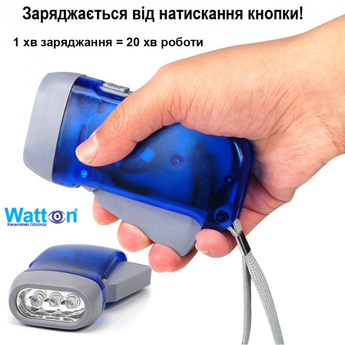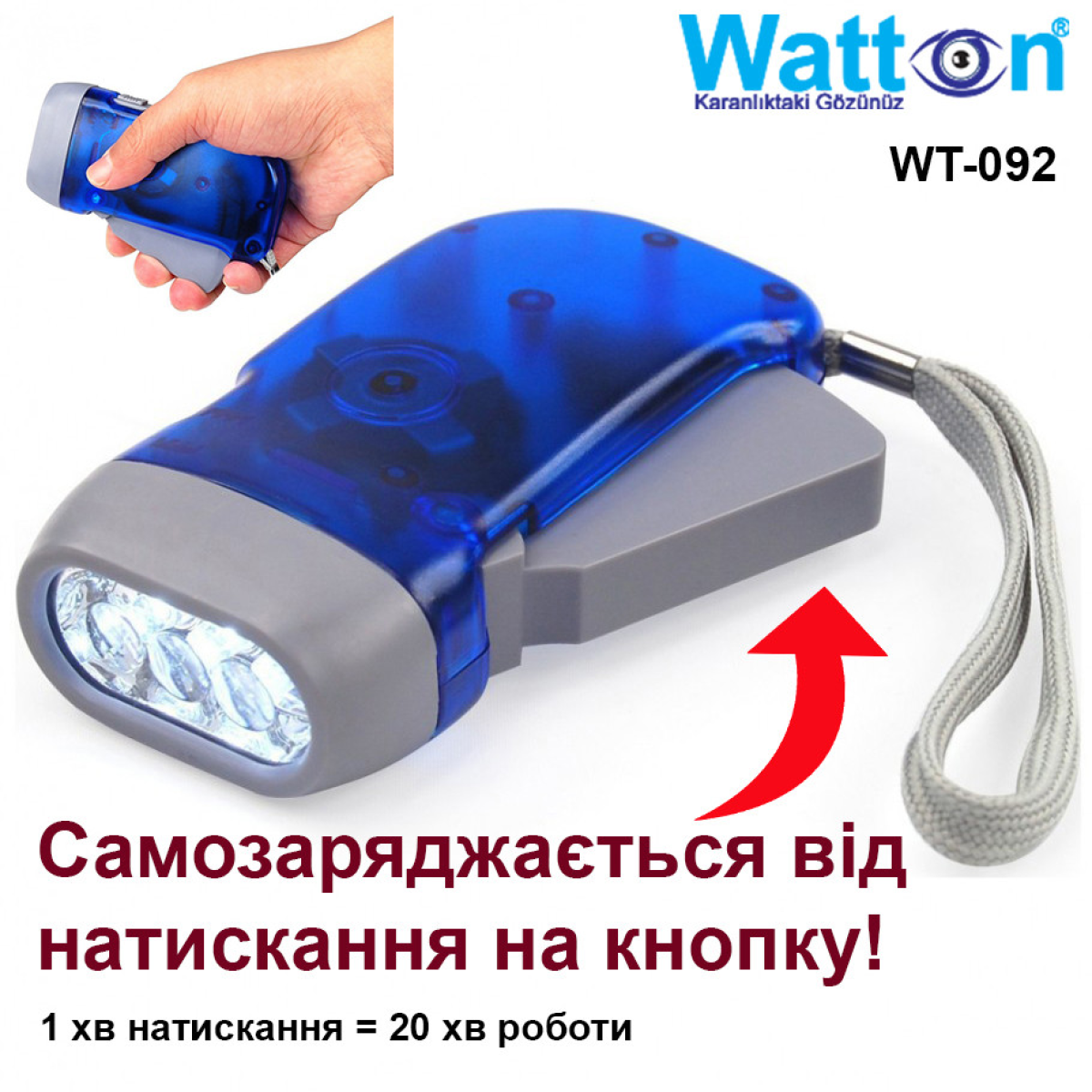 Ліхтарик ручний світлодіодний з динамо машиною Watton WT-092 вічний динамо-ліхтар