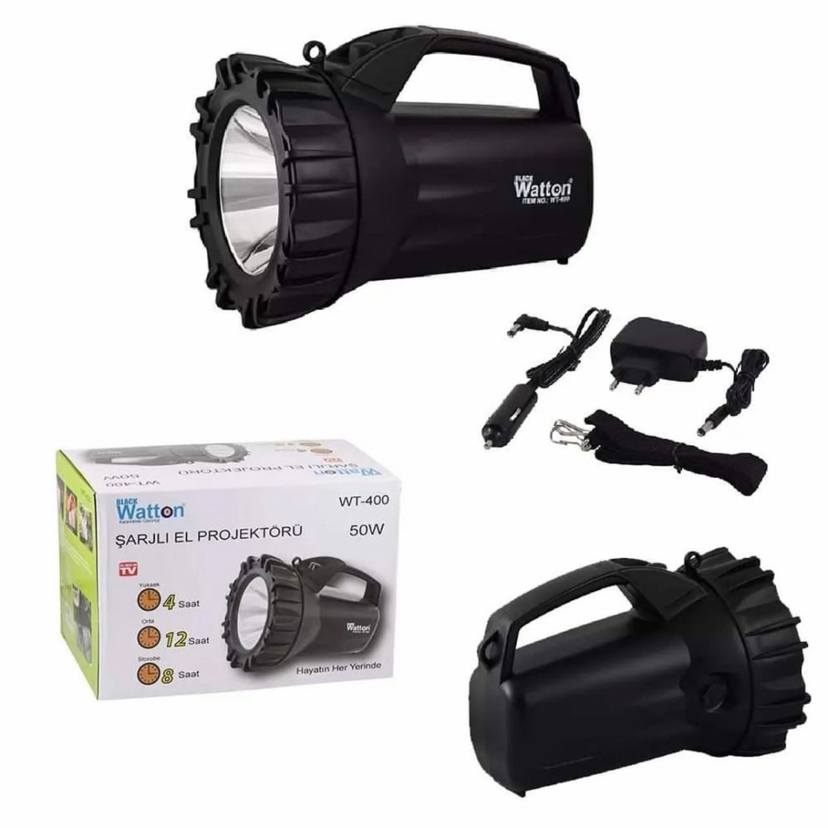 Комплектація: ліхтар, автомобільна та звичайна зарядка, ремінь для перенесення.