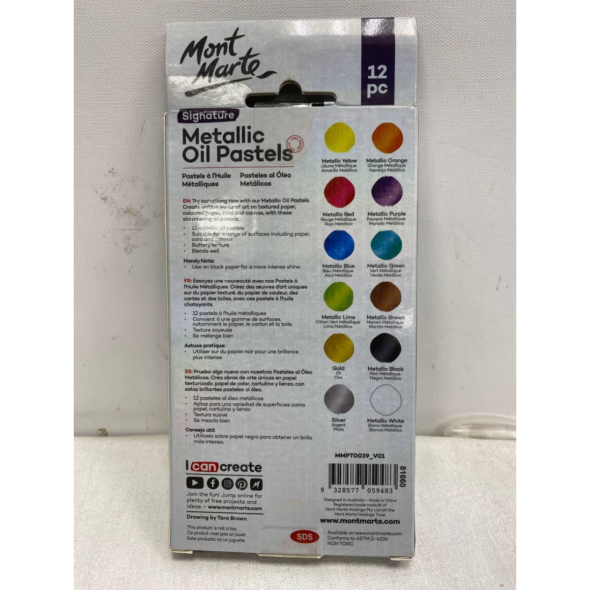 Пастель олійна металевих Mont Marte - це професійні кольорові матеріали для малювання з м“якою маслянистою текстурою. У наборі 12 мерехтливих металевих пастелей з насиченим кольором і м“якою маслянистою текстурою. Цей художній набір пастелі чудово підходить для змішування і змішування кольорів на різних гладких і текстурованих поверхнях. Пастель також можна тонувати з використанням олійних медіумів або скипидару для створення ефекту глазурі. Характеристики: 12 високоякісних пігментів М“яка, масляниста текстура Легкість змішування Нетоксичний склад