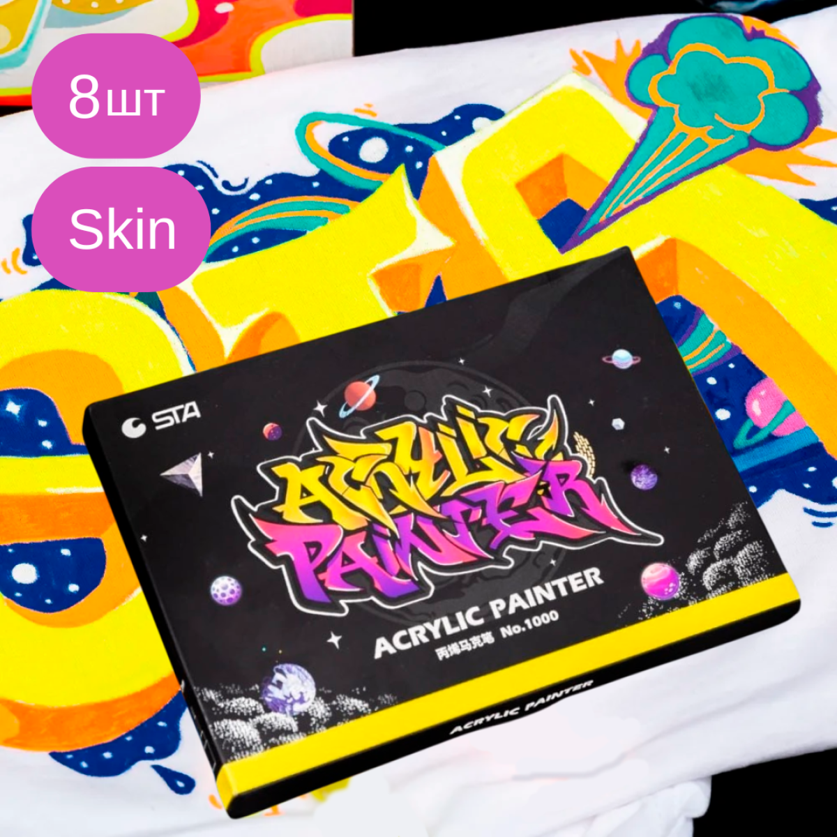 Маркери акрилові STA для малювання, преміум якість, набір 8 кольорів, універсальні для скла, дерева, ткани та кераміки