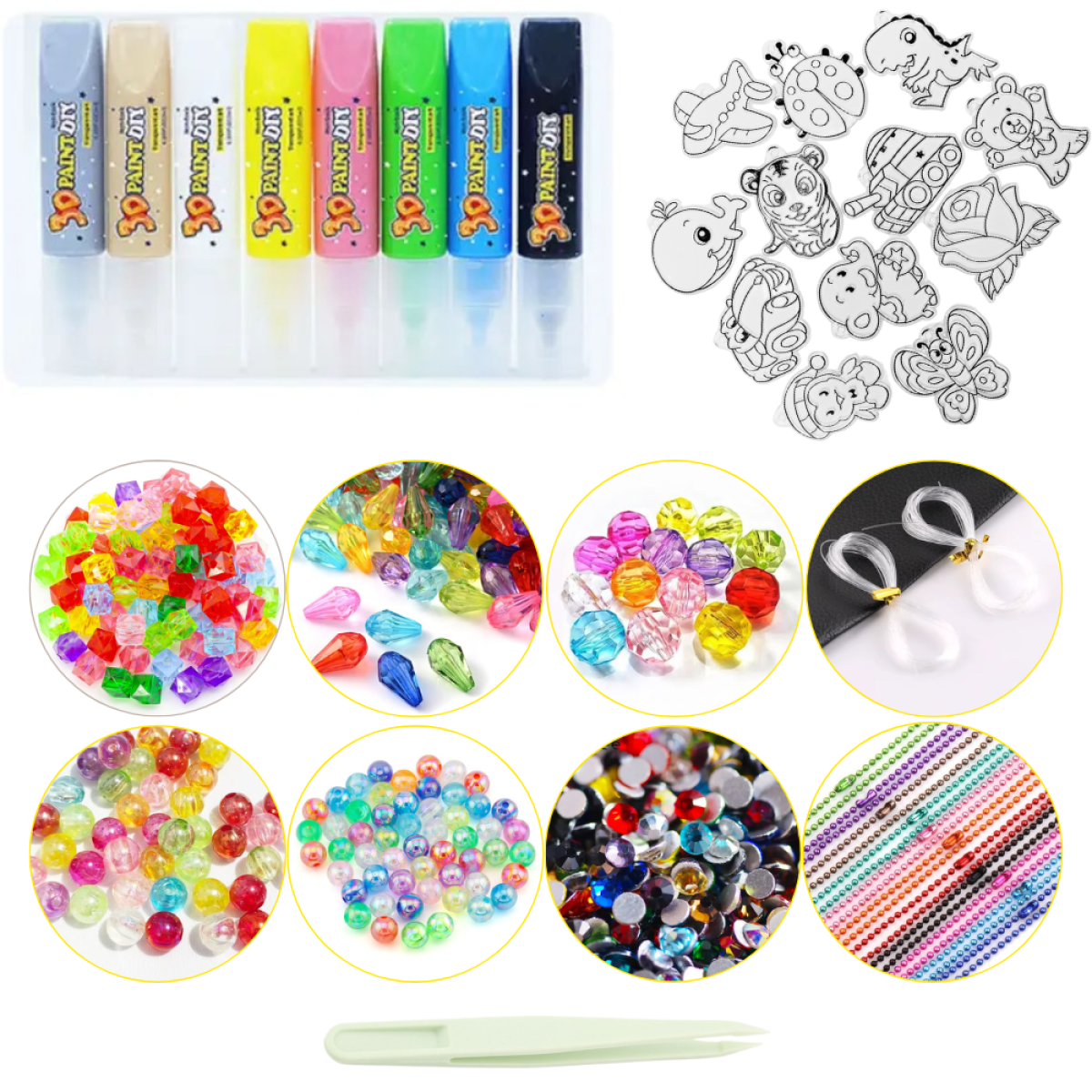 Вітражні фарби та аксесуари для DIY-виробів, намистини та гумки, набір творчості, Set 1