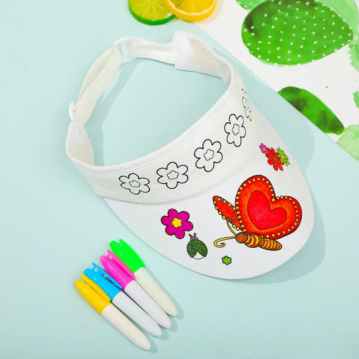 Кепка-розмальовка з тканинними маркерами (4 кольори), набір для творчості, дитячий комплект, дизайн Метелик