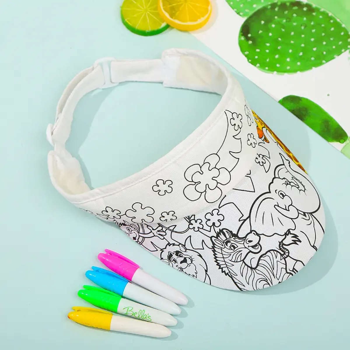 Дитячий набір для творчості: кепка-розмальовка з маркерами для тканини (4 кольори), малюнок Тварини